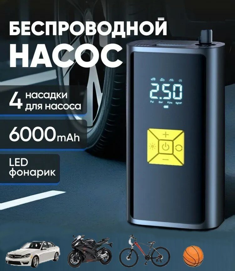 Компрессор портативный воздушный универсальный со встроенным аккумулятором на 6000 мАч для автомобиля, мотоцикла, велосипеда, мяча: сравнение цен, характеристики, фото, актуальное наличие и цены.