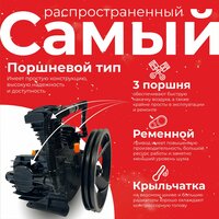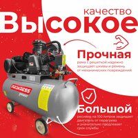 Воздушный компрессор представляет собой устройство для сжатия и подачи воздуха под давлением. Компрессор предназначен для подачи сжатого воздуха в качестве энергоносителя при строительных работах, авто-слесарных работах, в приводах систем автоматики, пневматических машин и оборудования и т. д. Объем бака 100 литров.