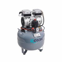 Компрессор воздушный, безмасляный. Обеспечивает подачу сжатого воздуха высокой степени очистки, малошумный. Применяется: Стоматологическими клиниками и зуботехническими лабораториями для питания пневмоинструментов (моторов, турбин, пескоструев, распаковщиков и т. п.); Медицинскими клиниками и стационарами для подачи воздуха в системы газоснабжения, обеспечивает работу дыхательных систем; Автомастерскими и студиями аэрографии для подачи воздуха в краскопульты, аэрографы, гайковерты, пескоструи; Домашними мастерами для привода пневматических инструментов (распылителей, гайковертов, и т. д.). Отличительными особенностями являются: Микрофильтрация входящего воздуха; Накопитель - окрашен порошковой краской с антикоррозионными свойствам; Монометр - для контроля давления; Прессостат для регулировки давления сжатого воздуха (от 4 до 8 мП); Слив конденсата - ручной Ручки для удобства переноски компрессора В соответствии с Регистрационным удостоверением медицинского изделия: ФСЗ 2008/03029 допущен для использования медицинскими организациями в медицинской деятельности. Для снижения шума компрессор можно поставить в шумопоглощающий шкаф.