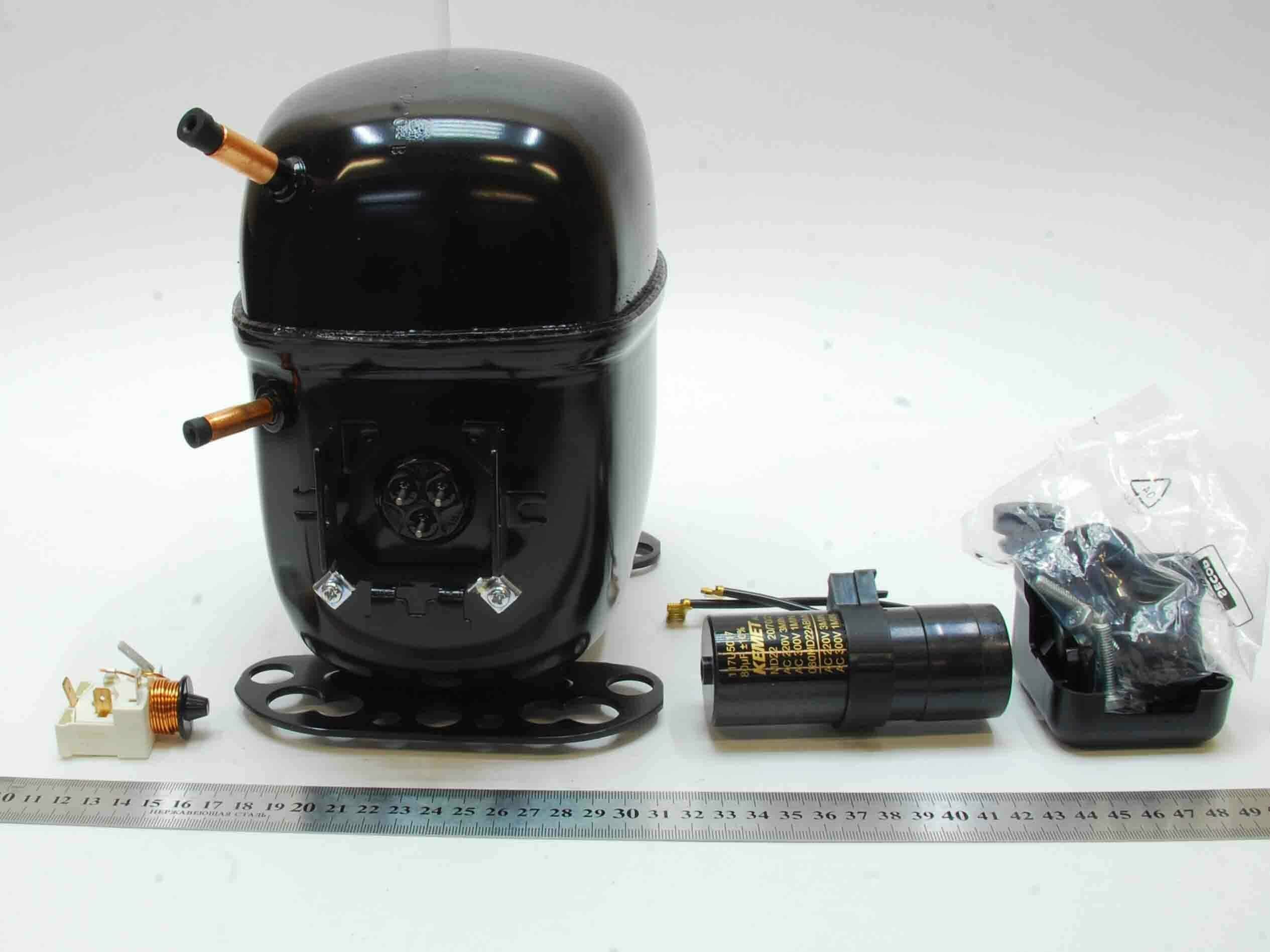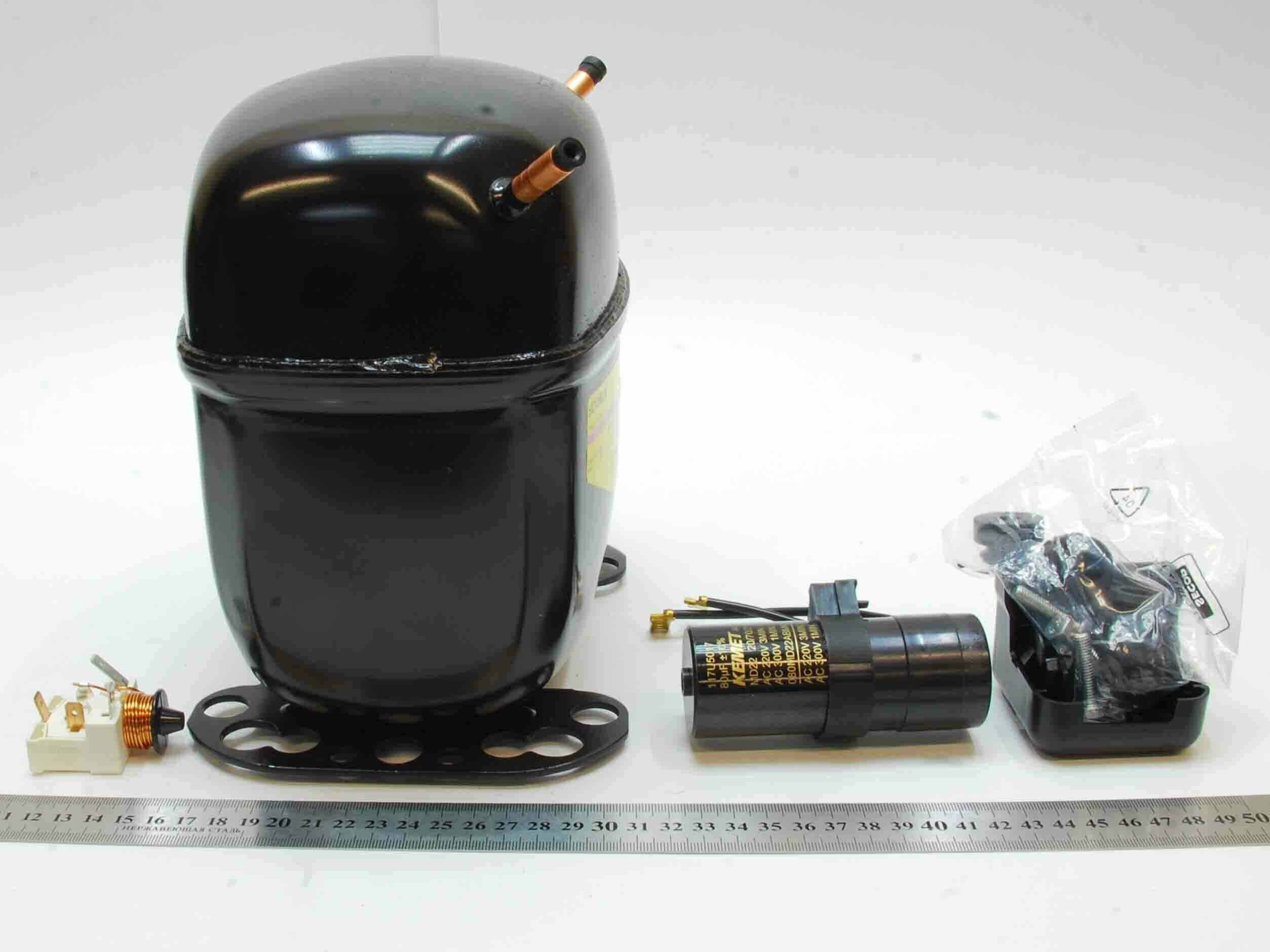 Мотор компрессор, пуско-защитное реле, кожух реле, элементы крепежа основания компрессора.