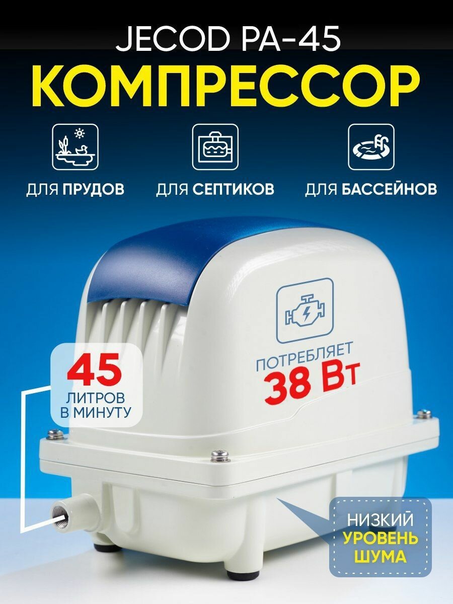 Купить Компрессор воздушный 45 л/мин, для септика и пруда Jecod Pa-45 с доставкой по всей России. Компрессор воздушный 45 л/мин, для септика и пруда Jecod Pa-45: сравнение цен, характеристики, фото, актуальное наличие и цены.