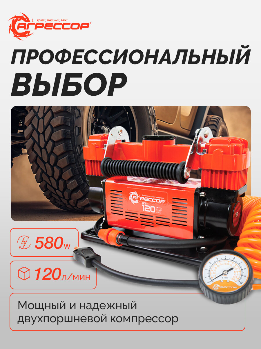 Компрессор автомобильный двухпоршневой. Насос электрический от аккумулятора. Агрессор, 120 л/мин, AGR-120: сравнение цен, характеристики, фото, актуальное наличие и цены.
