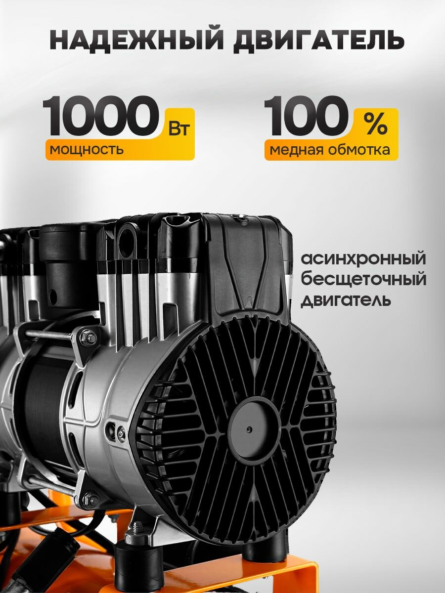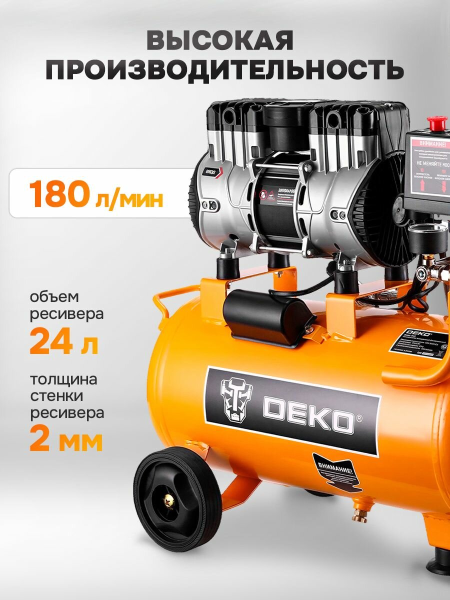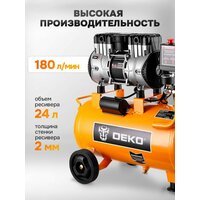 Компрессор DEKO DKAC-O24 — это надежный воздушный аппарат для выполнения широкого спектра задач. Безмасляный поршневой двигатель обеспечивает простоту обслуживания и делает модель оптимальным выбором для использования в условиях гаража, на даче или в домашней мастерской. Модель оснащена ресивером емкостью 24 литра, что обеспечивает стабильную подачу сжатого воздуха и снижает нагрузку на двигатель. Компрессорная установка развивает максимальное давление до 8 Бар и производительность 180 л/мин, что позволяет эффективно работать с различным пневмоинструментом. Аппарат предназначен для подключения краскопульта, аэрографа, пистолета для подкачки шин или пескоструйного оборудования. Это делает его универсальным решением для подкачки колес автомобиля, выполнения покраски кузова авто или других ремонтных работ. Компрессор работает от сети 220В (220в), что гарантирует его совместимость со стандартной электросетью. Компактные размеры и малошумная работа характеризуют данную модель как практичный мини-станок для автомобиля и бытового применения.