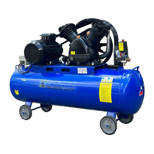 Мощность в компрессоре - 4000 Ватт, производительность на выходе - 720 литров минуту, объем ресивера - 150л, количество цилиндров - 2, размер которых 90 миллиметров, привод в агрегате - ременной. В процессе работы частота вращения двигателя достигает 2850 об/мин.