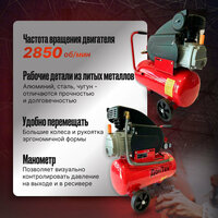 | Особенности | защита от перегрева, индикатор уровня масла, манометр, осушитель воздуха, предохранительный клапан, регулировка давления, ручка для переноски, частотный преобразователь |