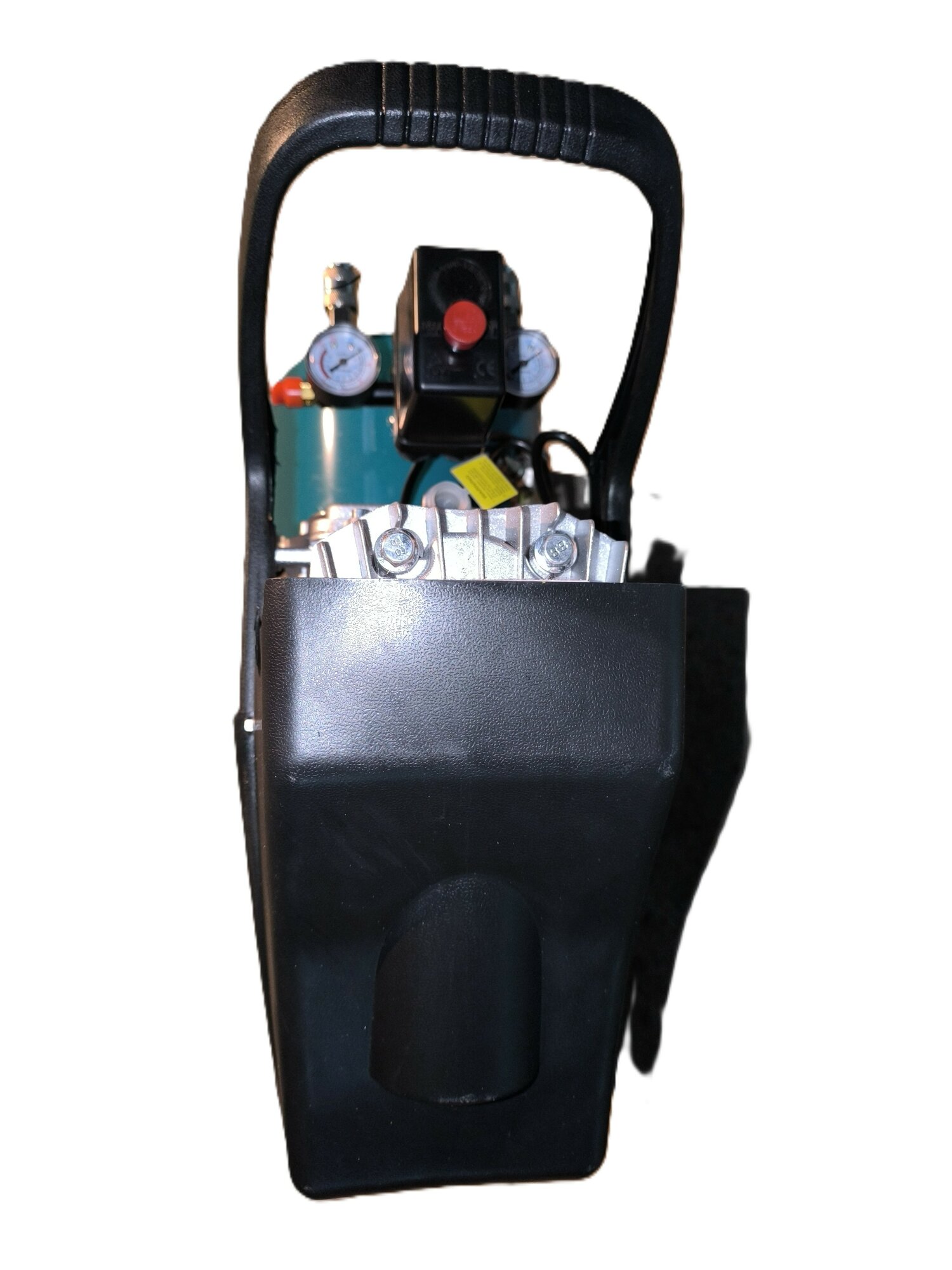 Компрессор оборудован реле давления для автоматического поддержания заданного давления воздуха в ресивере. Для безопасности пользователя на электродвигатель установлен защитный кожух, направляющий поток воздуха для охлаждения цилиндра. Для контроля давления воздуха в ресивере и на выходе компрессора служат манометры. Модель оборудована двумя быстроразъемными выходами для подключения потребителей. Оснащен устройством тепловой защиты от перегрузок.