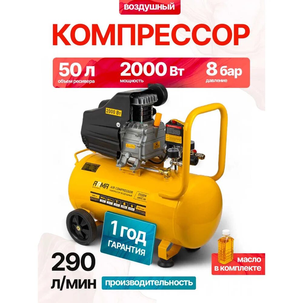 Купить Компрессор воздушный поршневой масляный ARMA 2,0 кВт, 50л ресивер, 290 л/мин AROC-50, различных задач с доставкой по всей России. Компрессор воздушный поршневой масляный ARMA 2,0 кВт, 50л ресивер, 290 л/мин AROC-50, различных задач: сравнение цен, характеристики, фото, актуальное наличие и цены.