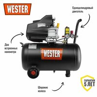 Компрессор воздушный WESTER WK1500/50, поршневой масляный, 50 литров, 1500 Вт, 190 л/мин, 8 бар: сравнение цен, характеристики, фото, актуальное наличие и цены.