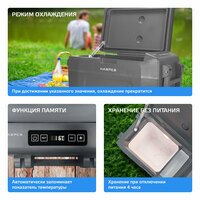 | Подробная комплектация | Автохолодильник - 1 шт., кабель питания DC:12V/24V - 1 шт.; адаптер питания AC: 220-240/50/HZ - 1 шт.; инструкция пользователя, гарантийный талон |