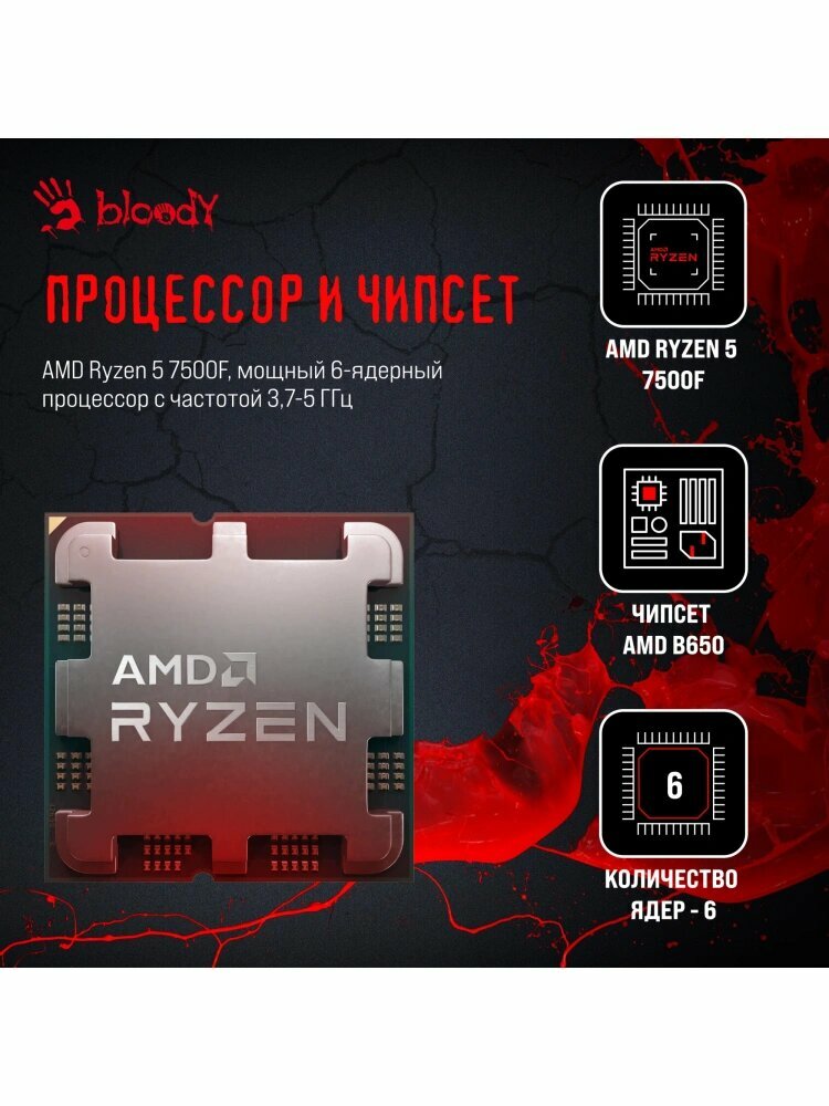 Компьютер Bloody BD-PC RB65C2, AMD Ryzen 5 7500F, DDR4 16ГБ, SSD 1024ГБ, NVIDIA GeForce RTX 4060 8192МБ, Windows 11 Home: сравнение цен, характеристики, фото, актуальное наличие и цены.