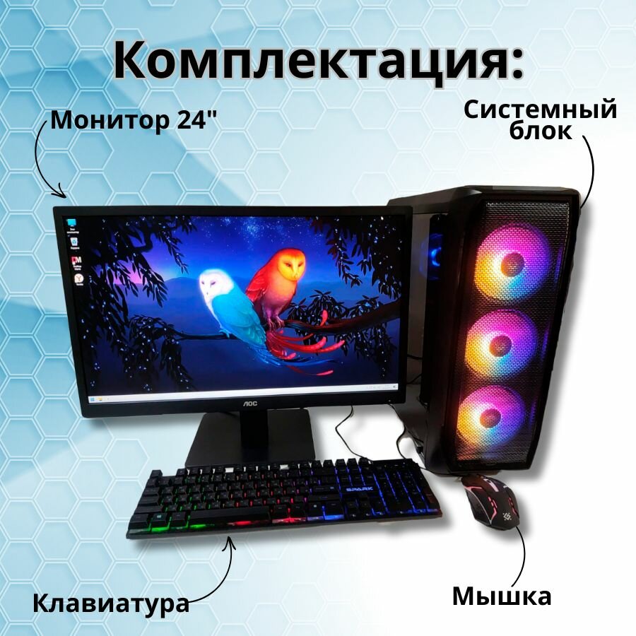 - Клавиатура + мышка с подсветкой клавиш. Заботимся о качестве и надежности, поэтому передаем в доставку в усиленной упаковке + компьютер проходит тестирование перед отправкой. Гарантия 1 год + техническая поддержка.