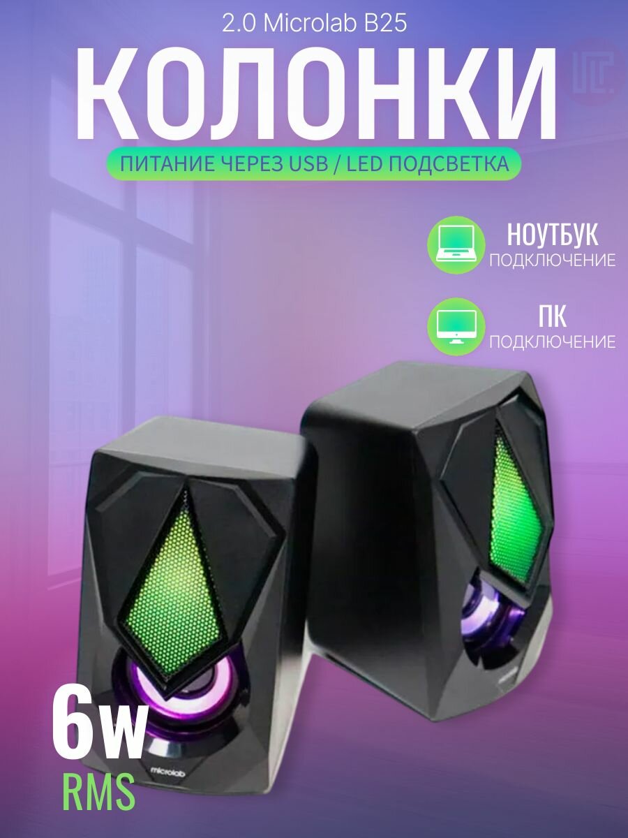 Компьютерная акустика MICROLAB B25 черный, колонки для ПК и ноутбука, 2.0, LED подсветка: сравнение цен, характеристики, фото, актуальное наличие и цены.
