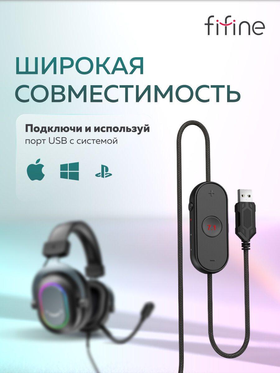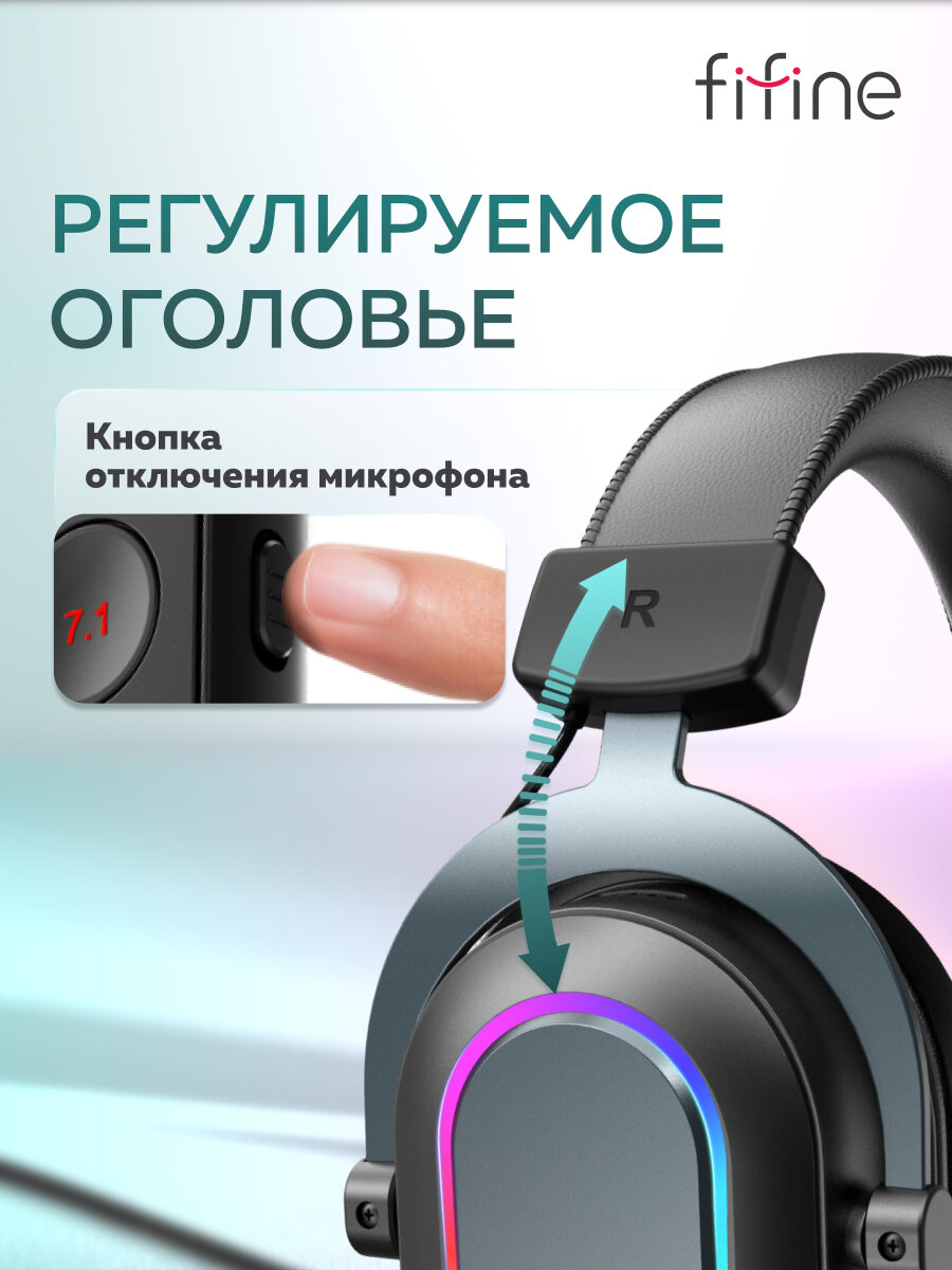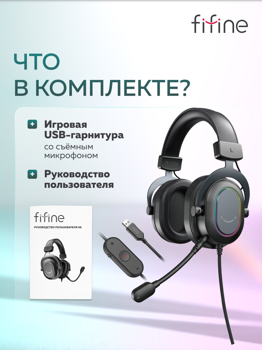 Купить Игровая компьютерная гарнитура Fifine H6 Gaming Headsets с RGB подсветкой (Black) / объемный звук 7.1 с доставкой по всей России.
