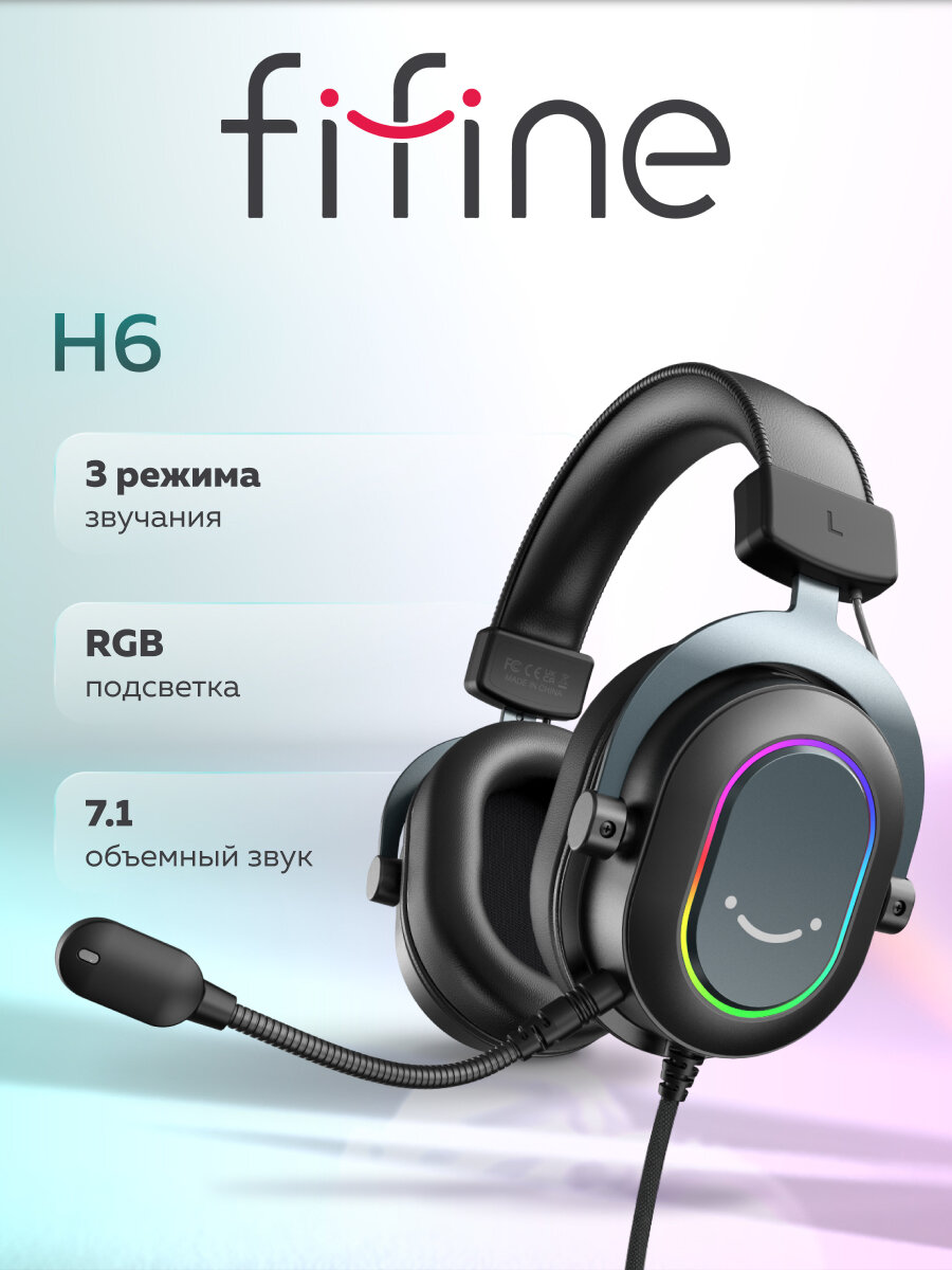 Игровая компьютерная гарнитура Fifine H6 Gaming Headsets с RGB подсветкой (Black) / объемный звук 7.1: сравнение цен, характеристики, фото, актуальное наличие и цены.