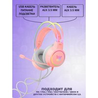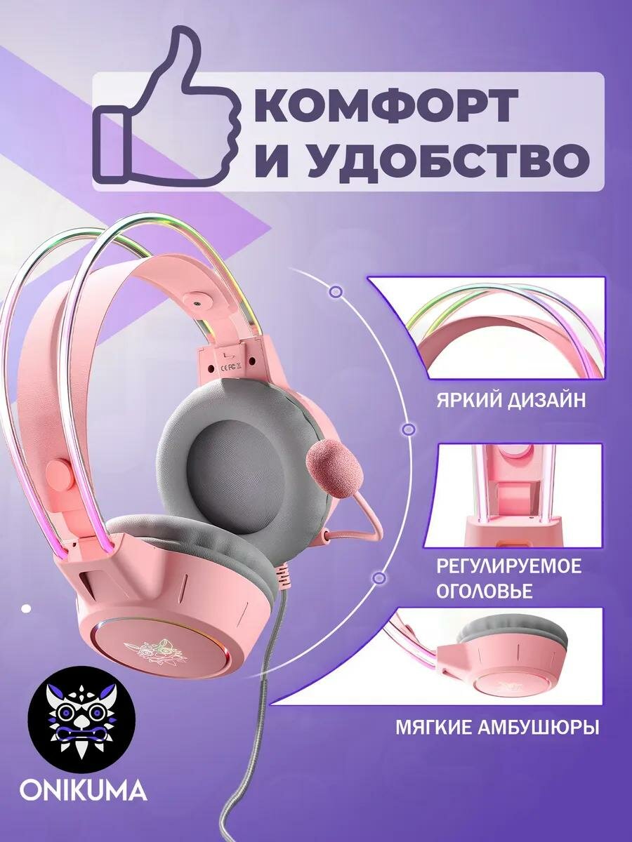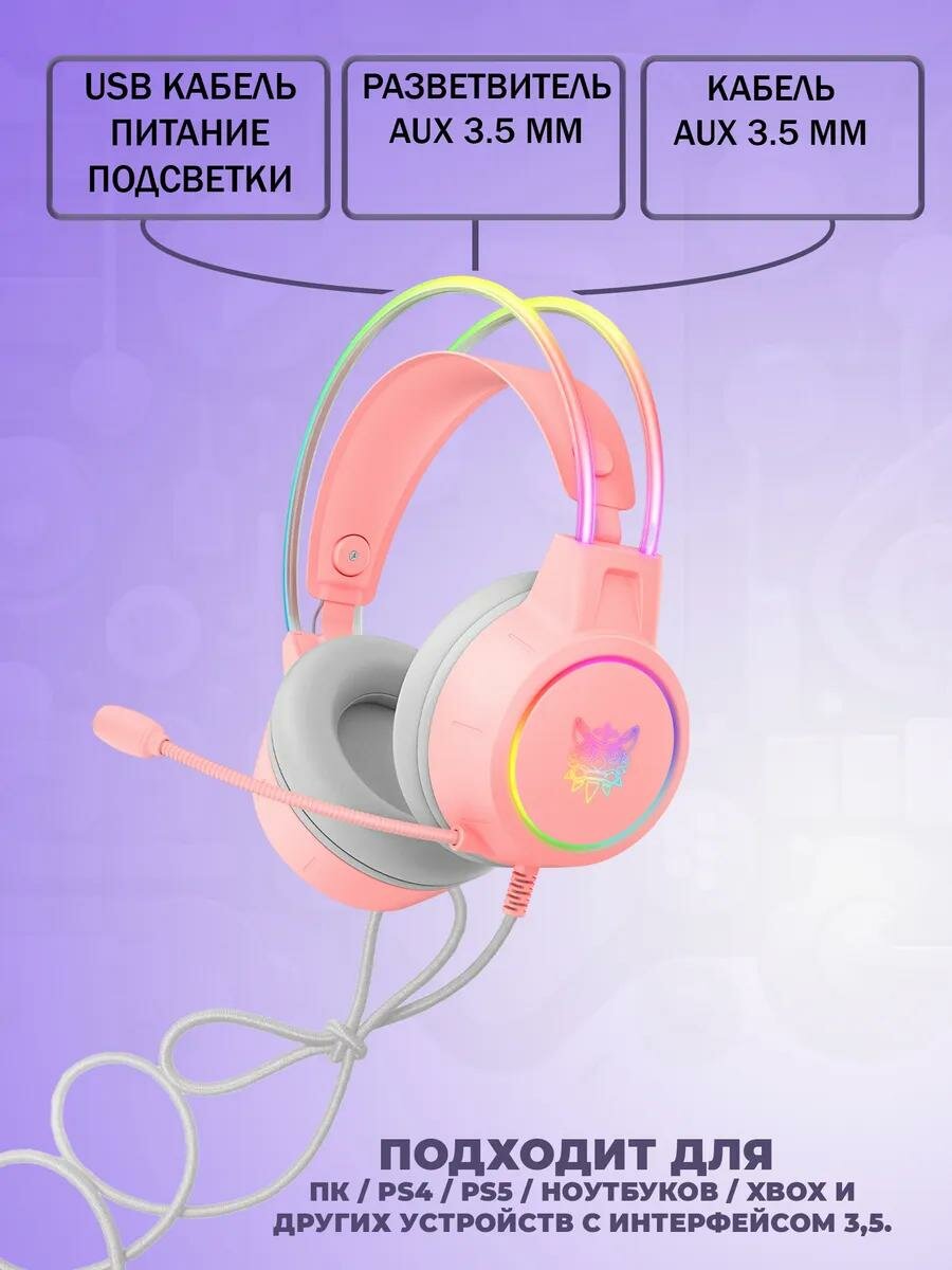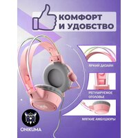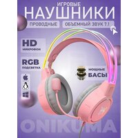 Купить Компьютерная гарнитура Onikuma X15 Pro, RGB-подсветка, разъем 3.5 jack, розовый с доставкой по всей России.
