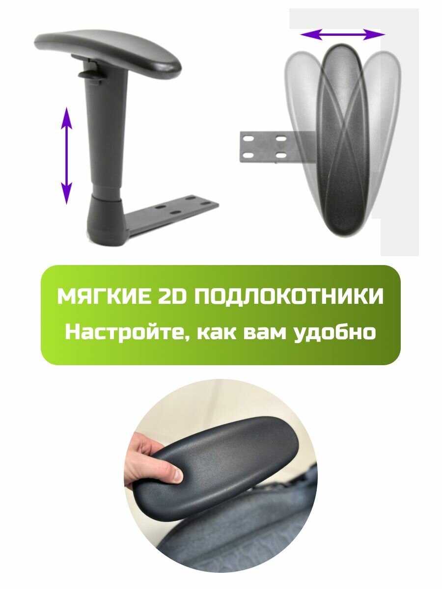 | Регулировка | высоты подголовника, высоты подлокотников, высоты поясничного упора, высоты сиденья, высоты спинки, жесткости качания, наклона спинки, угла подлокотников |