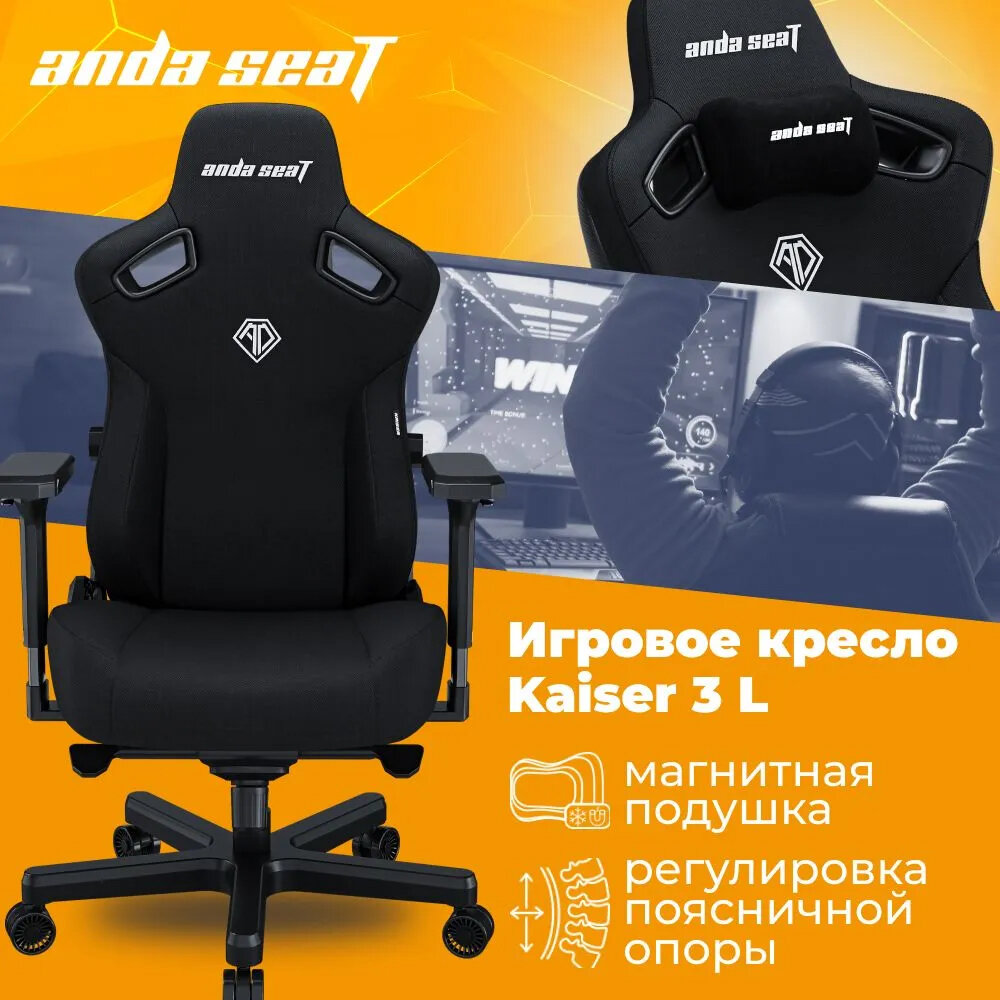 Игровое кресло компьютерное AndaSeat Kaiser 3 , размер L (120кг), текстиль, Carbon Black (черный): сравнение цен, характеристики, фото, актуальное наличие и цены.