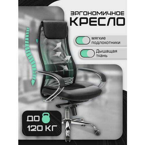 Кресло компьютерное Бюрократ для дома, для комнаты. Подойдет как для взрослого, так и для школьника. Можно использовать как офисное. Подходит в офис или кабинет руководителя. Сочетается с любой мебелью квартиры. Модель современная для любого интерьера. Надежный корпус и долговечный наполнитель. Мягкое сиденье с обивкой из экокожи с вставкой из ткани высокой износостойкости. Для поддержания спины предусмотрена ортопедическая спинка из сетки и поясничный упор. Простой уход за обивкой. Установлен синхромеханизм со смещенной осью качания и возможностью фиксации в нескольких положениях и газлифт с регулировкой высоты. Максимальная нагрузка - 120 кг. Металлическая крестовина и колесики с покрытием для паркета и ламината. Удобные анатомические подлокотники с мягкими накладками из экокожи. Производство в России. Простая сборка без лишних усилий. Гарантия 24 месяца.