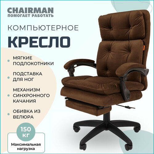 Кресло руководителя CHAIRMAN HOME 442 просто создано для уютного и комфортного кабинета! Такое мягкое и удобное, но при этом стильное, представительное и надежное. Его солидные размеры и усиленная конструкция обеспечивают безупречную работу при повышенных нагрузках, а дополнительные подушки, бархатистая обивка из велюра и выдвижная подставка для ног подарят непревзойденный комфорт. Кроме того, компьютерное кресло оснащено синхромеханизмом качания с отклонением сиденья и спинки 1:3 и возможностью фиксации в любом положении. Просто настройте правильный для вас угол наклона – и наслаждайтесь!