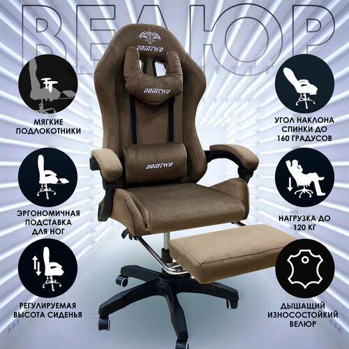 - Очень удобное игровое кресло из ткани ( велюра ), подходит под многие типы телосложения ! Кресло имеет специальные подушки,под голову и спину, отлично подпирают и расслабляют ваше тело. Подлокотники с мягкой обивкой естественно повторяют комфортное положение рук . - Премиальная обивка : велюр - гипоаллергенный материал, в таком кресле летом не будет жарко. - Нейлоновые ролики обеспечивают мягкость хода и низкий уровень шума при движении кресла. - Красивый классический геймерский стиль. Эргономичный дизайн спинки обеспечит поддержку спины, а широкий каркас кресла заставит Вас чувствовать будто Вы в спортивном автомобиле. -Материал колес: прорезиненный пластик - Мягкие подлокотники - Поясничный подпор, подпор под голову или шею в виде мягких подушек. - Грузоподъёмность до 120кг - Обивка кресла выполнена из велюра - современного материала. Велюр износоустойчив, кресло способно сохранять привлекательный внешний вид длительное время. - Крестовина с ребрами жесткости, что обеспечивает надежность конструкции. - Регулировка спинки до 160 градусов и фиксация ее в любом положении. - Регулировка кресла по высоте. На фото указаны размеры в самом низком и самом высоком положении кресла. - В комплекте выдвижная подставка для ног ( атаманка ), что позволяет максимально расслабиться и даже поспать.