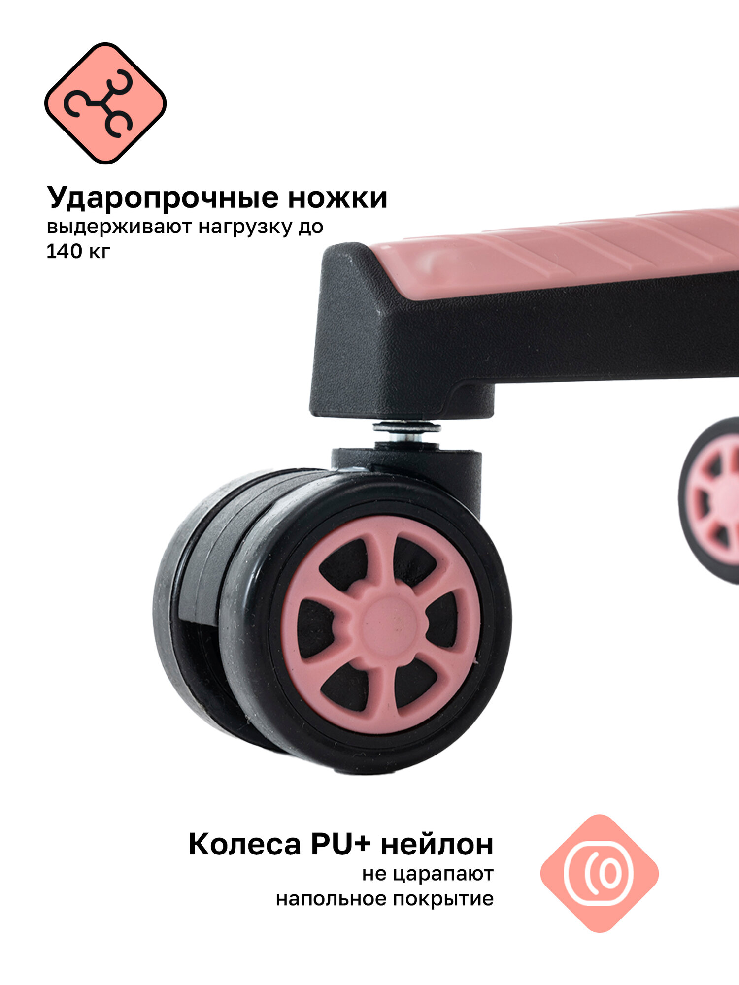 механизм качания, мягкое сиденье, прорезиненные колесики, фиксация спинки в любом положении