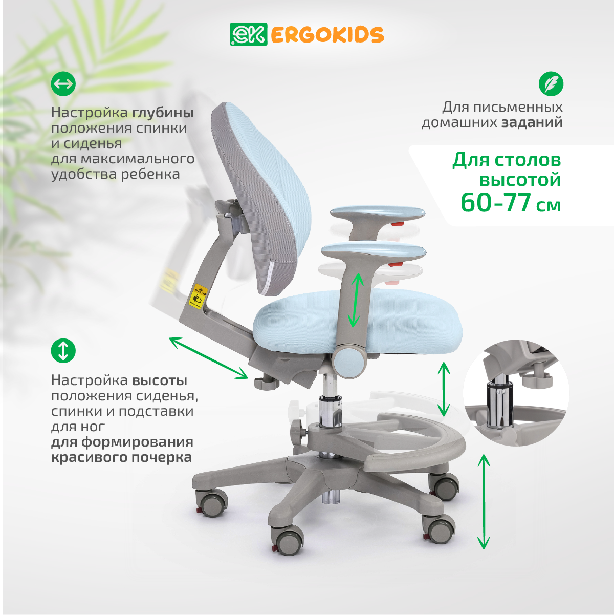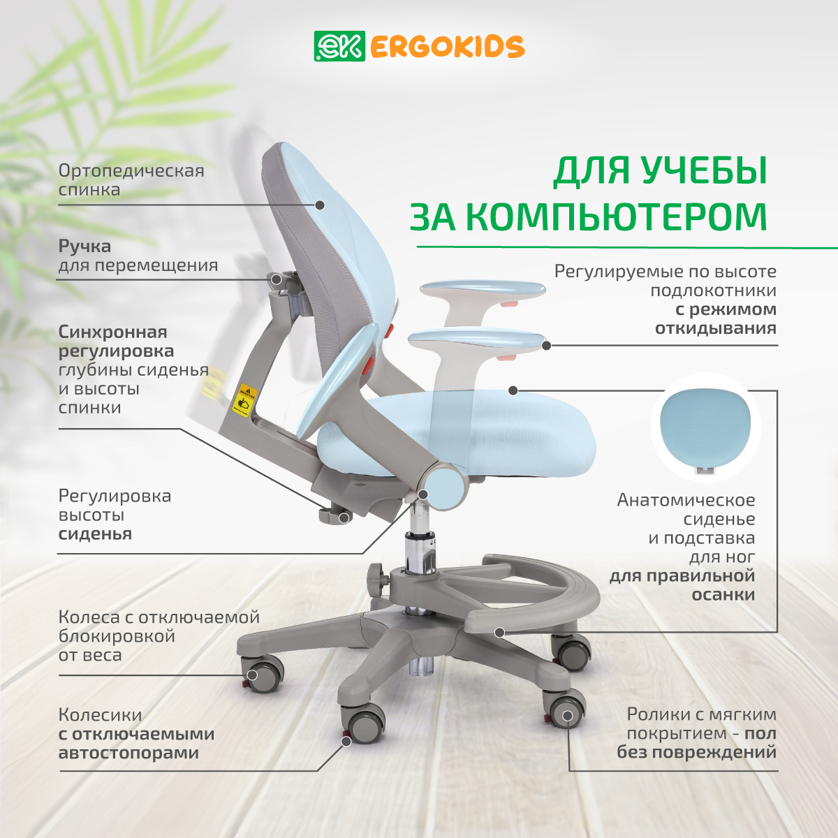 Купить Растущее компьютерное детское кресло с подлокотниками Ergokids Mio Y-407 голубое с доставкой по всей России.