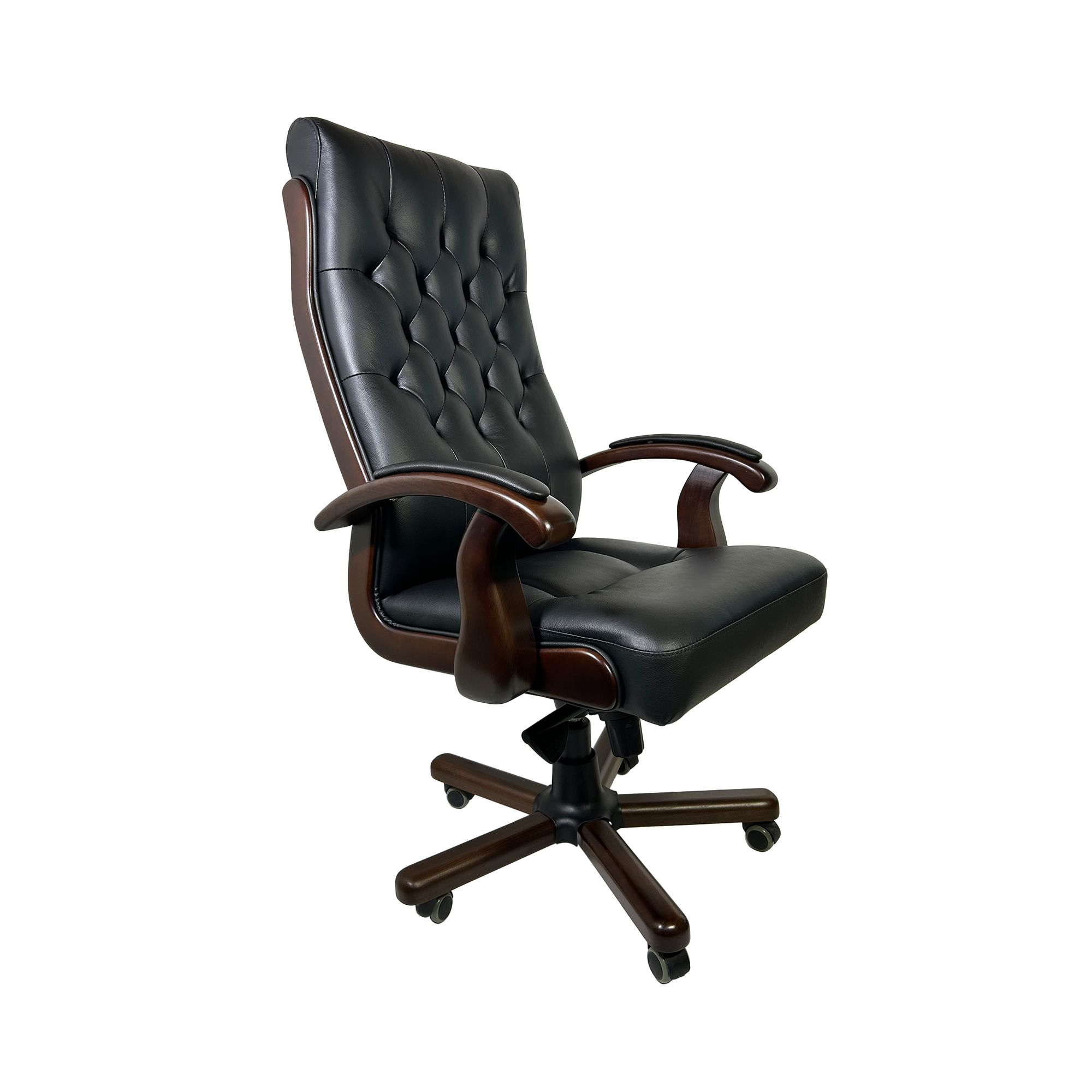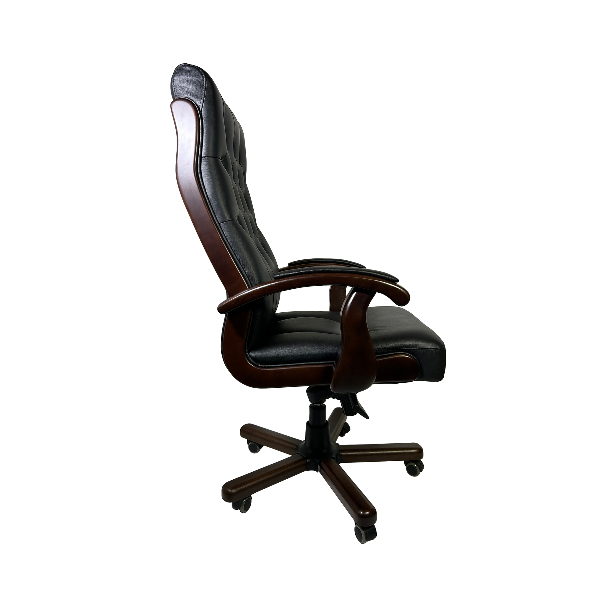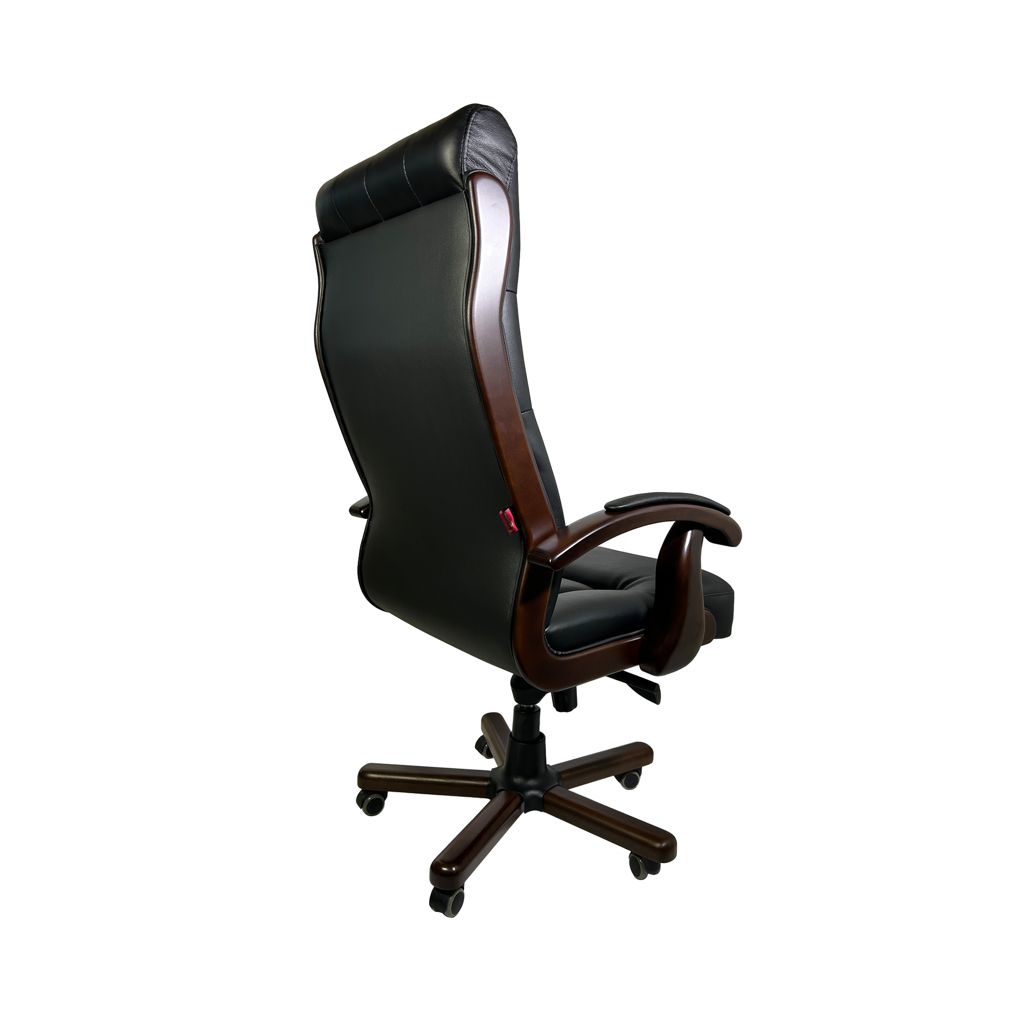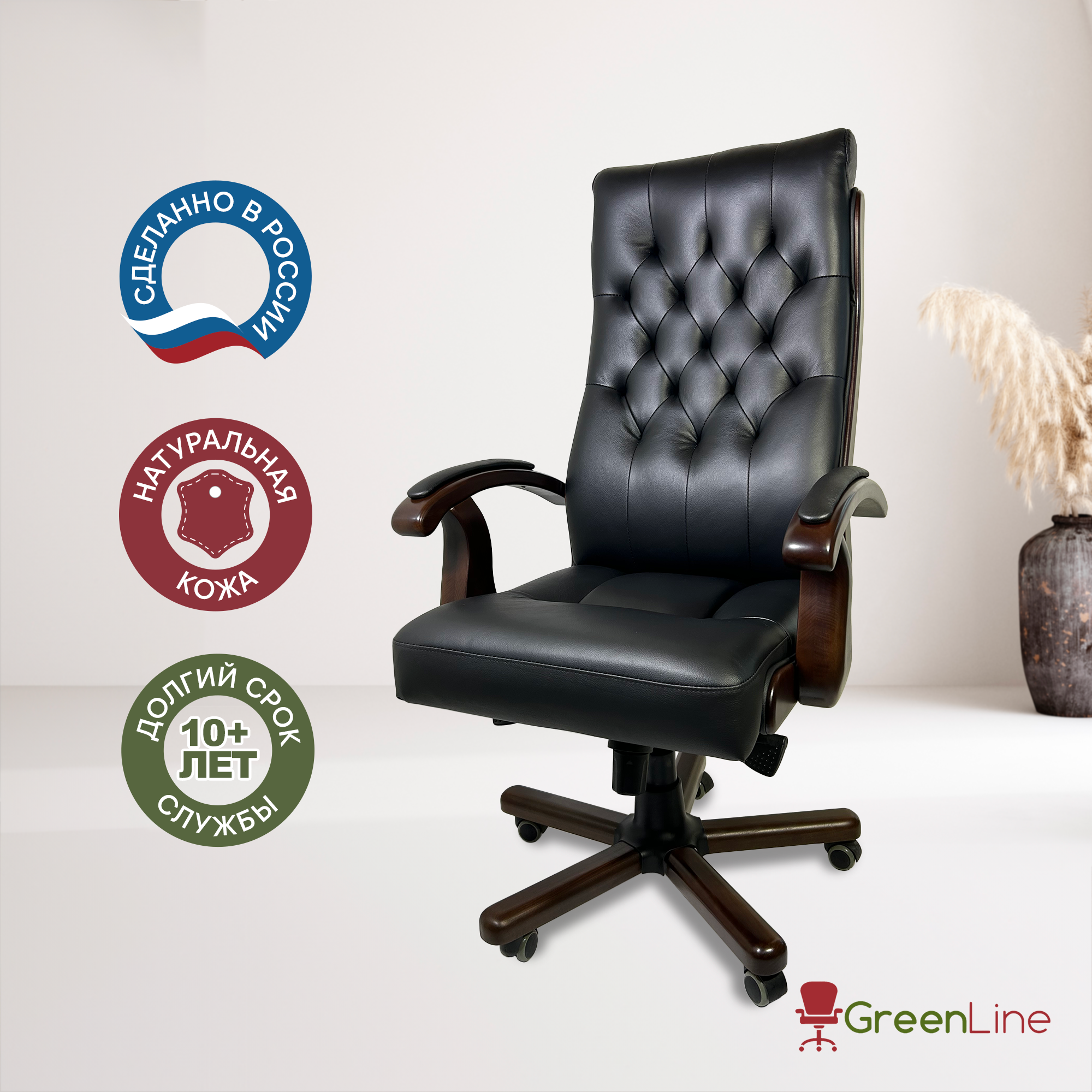 Купить Офисное кресло руководителя компьютерное Берн, мягкий подлокотник, кожаное, дерево, черное с доставкой по всей России.