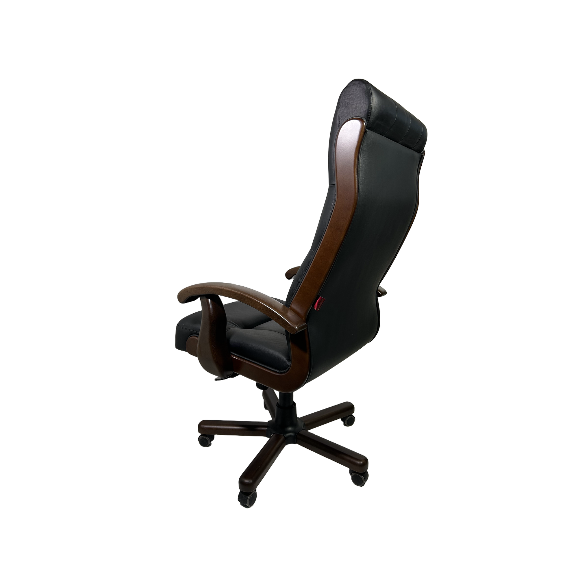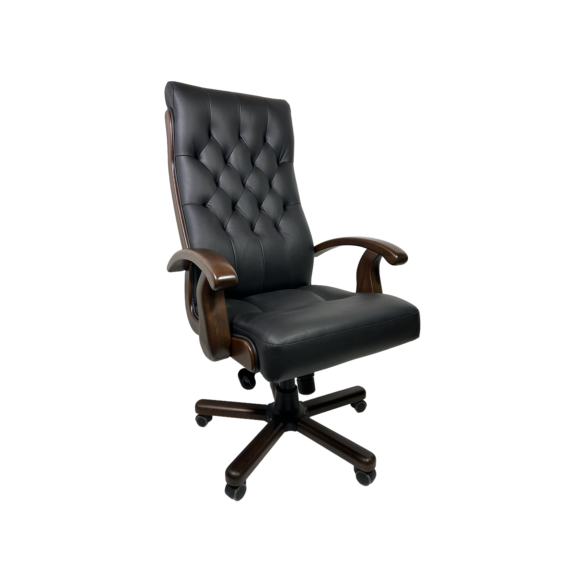 Компьютерное кресло руководителя офисное Берн, кожаное, массив дерева, черное (Nero)