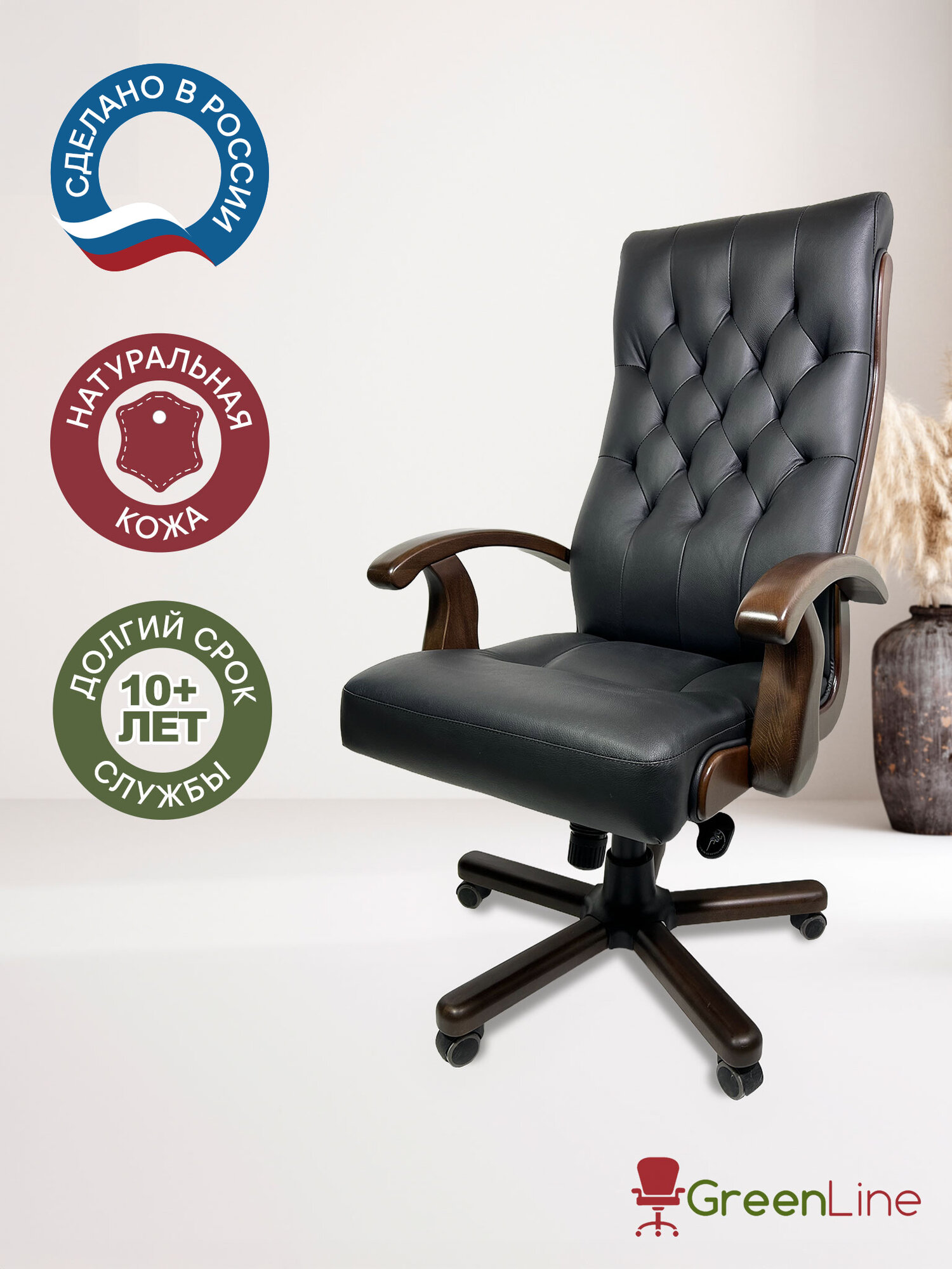 Компьютерное кресло руководителя офисное Берн, кожаное, массив дерева, черное (Nero): сравнение цен, характеристики, фото, актуальное наличие и цены.