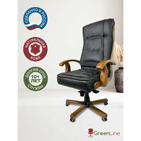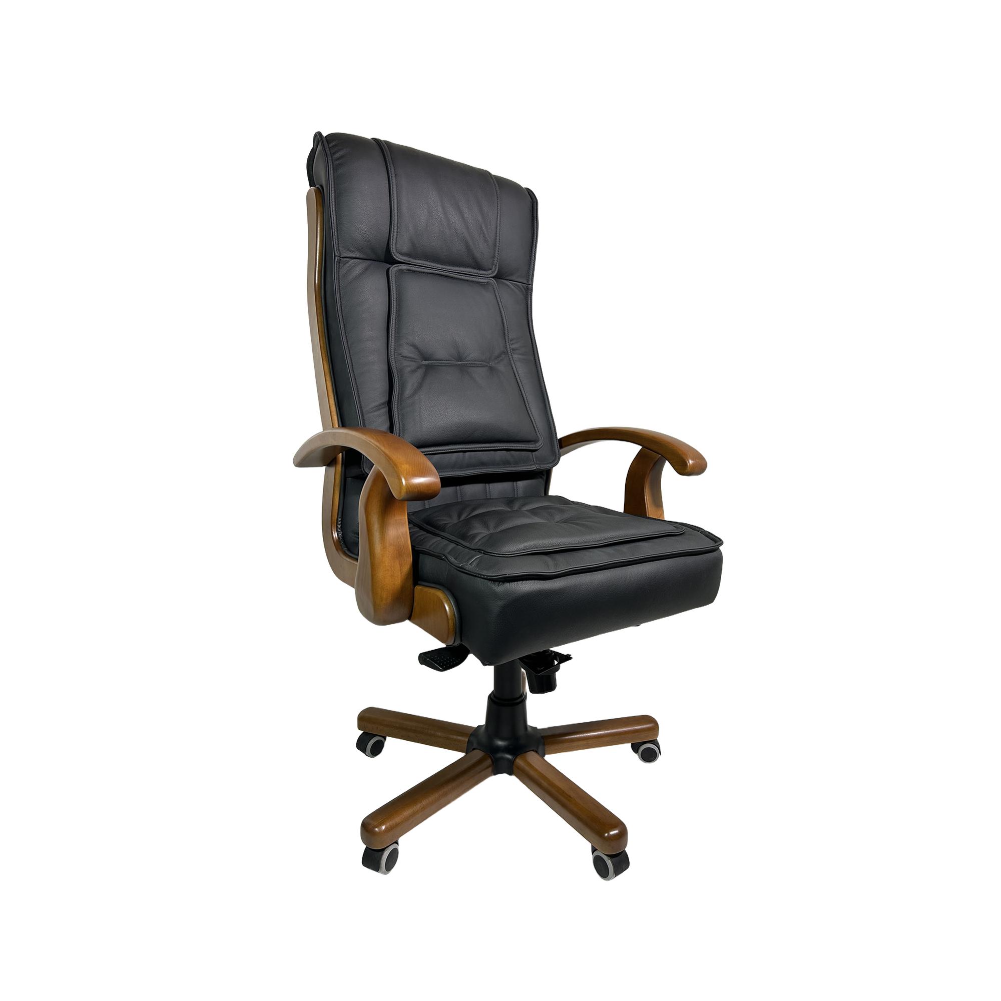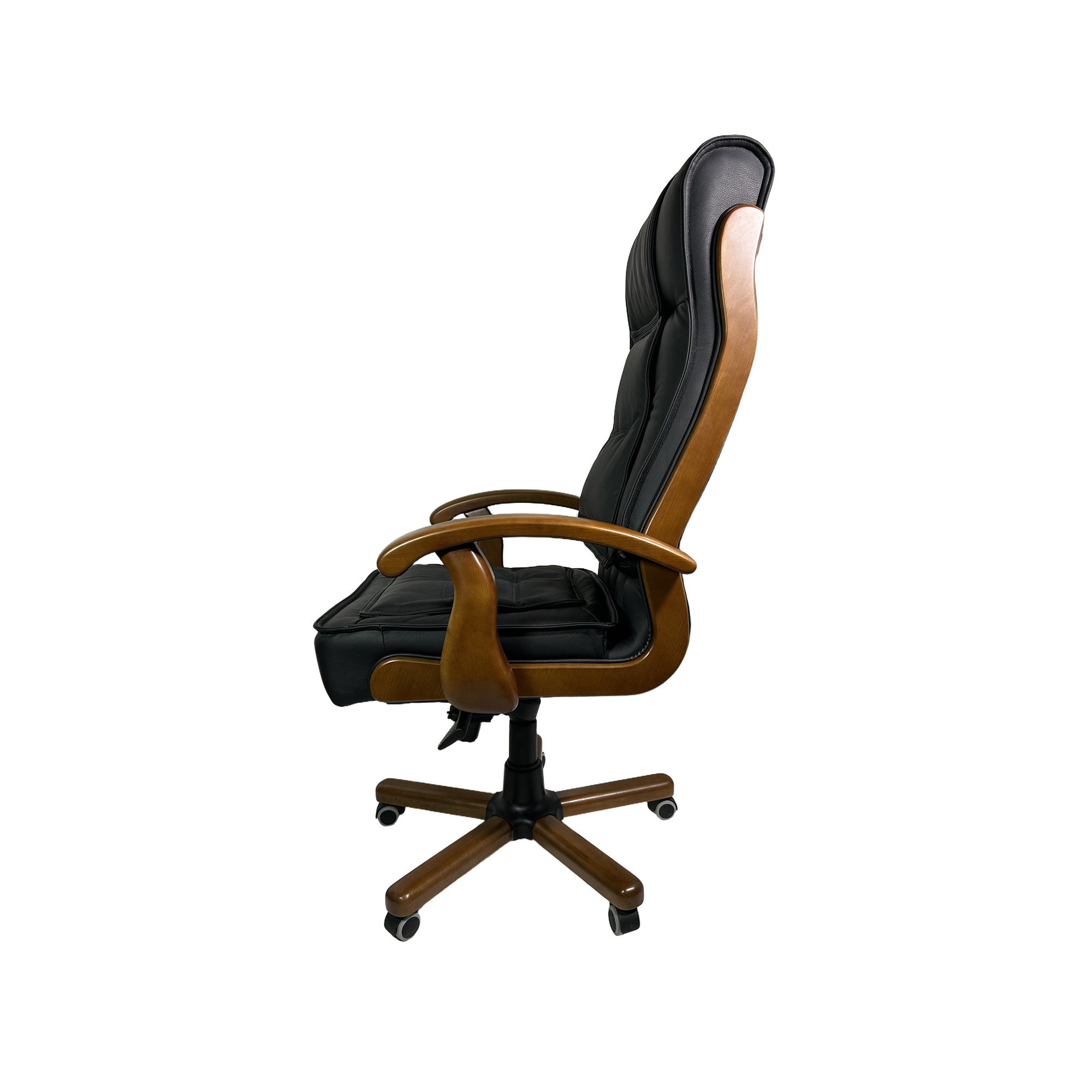 Купить Компьютерное кресло руководителя офисное Локарно, полностью из натуральной кожи, светлое дерево, нагрузка 200 кг, черное с доставкой по всей России.
