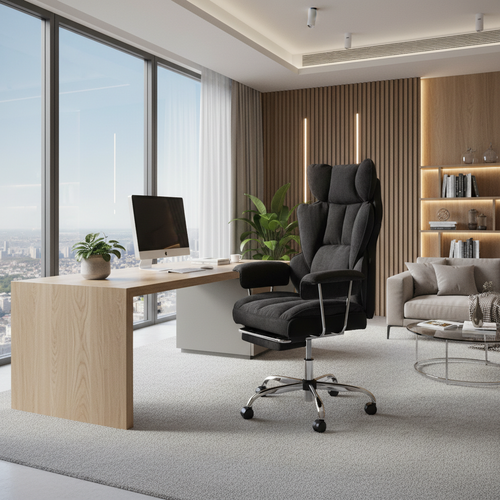 Кресло Comfy CR- это стильное и функциональное решение для офисного пространства, которое отлично подойдет как для кабинета руководителя, так и для переговорной комнаты. Оно выделяется своим качеством и дизайном, что придаст интерьеру презентабельный вид. Основные характеристики: 1. Каркас и наполнение: - Спинка и сиденье из многослойной фанеры толщиной 13 мм. - Наполнение из ППУ разной плотности (от 18 до 28 кг/м³) для комфортного использования. - В спинке предусмотрены пружинные блоки для дополнительной поддержки. 2. Обивка: - ткань держивающая 30 000 циклов по тесту Мартиндейла, что обеспечивает долговечность. 3. Подголовник: - Интегрированный в спинку, что обеспечивает удобство и поддержку шейного отдела. 4. Подлокотники: - Фиксированные, хромированные с мягкими накладками для комфортного положения рук. 5. Механизм: - Изменение высоты сиденья. - Угол наклона спинки можно регулировать до 45 градусов с фиксацией в любом положении. - Без регулировки жесткости качания. 6. Газовый лифт: - Класс 3, хромированный, с ходом около 90 мм для легкой регулировки высоты. 7. Основание: - 5-лучевая стальная крестовина с хромированным покрытием, разборная. - Толщина стенки 1,1 мм, диаметр 700 мм, в соответствии со стандартом BIFMA. 8. Ролики: - Диаметром 60 мм с полиуретановым покрытием, подходящие для паркетных и ламинатных полов. - Шток 11 мм, также в соответствии с стандартом BIFMA. 9. Имеется выдвижная, хромированная подставка под ноги. 10. Нагрузка: - Максимальный вес пользователя — до 120 кг. Кресло Comfy CR сочетает в себе комфорт и эргономику, делая его идеальным выбором для длительного использования в офисе или дома.