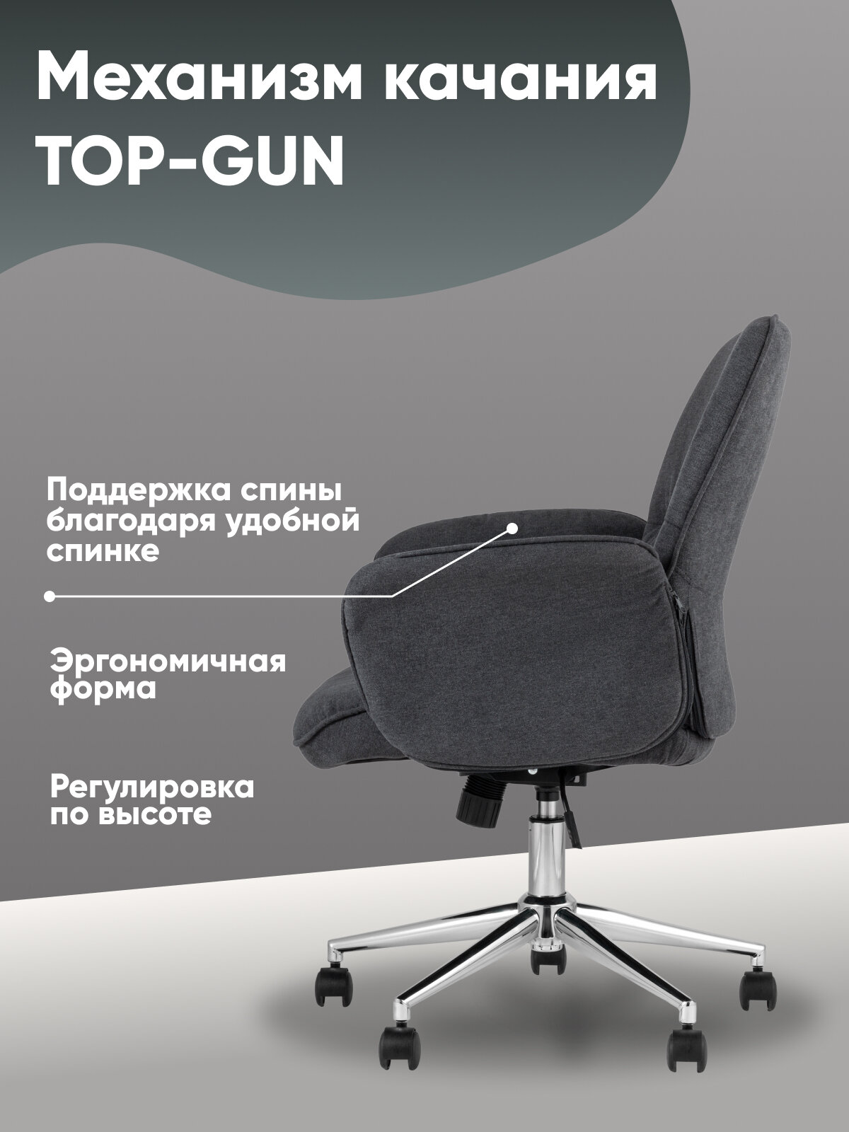 Комфорта добавляют удобные подлокотники, а благодаря механизму регулировки высоты и качания можно выбрать удобное положение.