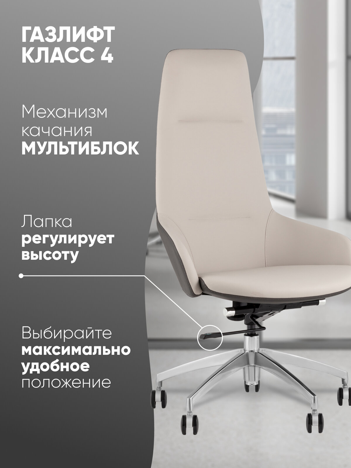 Компьютерное кресло TopChairs Soulo: стиль и комфорт для руководителя Кресло компьютерное руководителя TopChairs Soulo выполнено в элегантном бежевом цвете с серыми акцентами, что придает ему современный и стильный вид. Обивка из экокожи обеспечивает мягкость и комфорт, а также легкость в уходе. Кресло оснащено регулируемой высотой сиденья, что позволяет настроить его под индивидуальные параметры пользователя. Максимальная высота кресла составляет 122 см, а высота сиденья – 46 см. Глубина сиденья составляет 66 см, а ширина – 63 см. Каркас кресла изготовлен из прочного пластика, а крестовина – из металла. Материал наполнителя – пенополиуретан, который обеспечивает мягкость и комфорт при использовании. Материал обивки – экокожа, которая обладает высокой износостойкостью и долговечностью. Кресло оборудовано прорезиненными колесиками, которые обеспечивают плавное и бесшумное перемещение по поверхности пола. Это особенно удобно при необходимости частого перемещения кресла. Максимальная нагрузка на кресло составляет 125 кг, что делает его подходящим для людей разного телосложения. Вес кресла составляет всего 15,5 кг, что облегчает его перемещение и установку. Выбирая компьютерное кресло TopChairs Soulo, вы получаете стильный, комфортный и функциональный предмет мебели, который станет незаменимым помощником в работе и отдыхе.