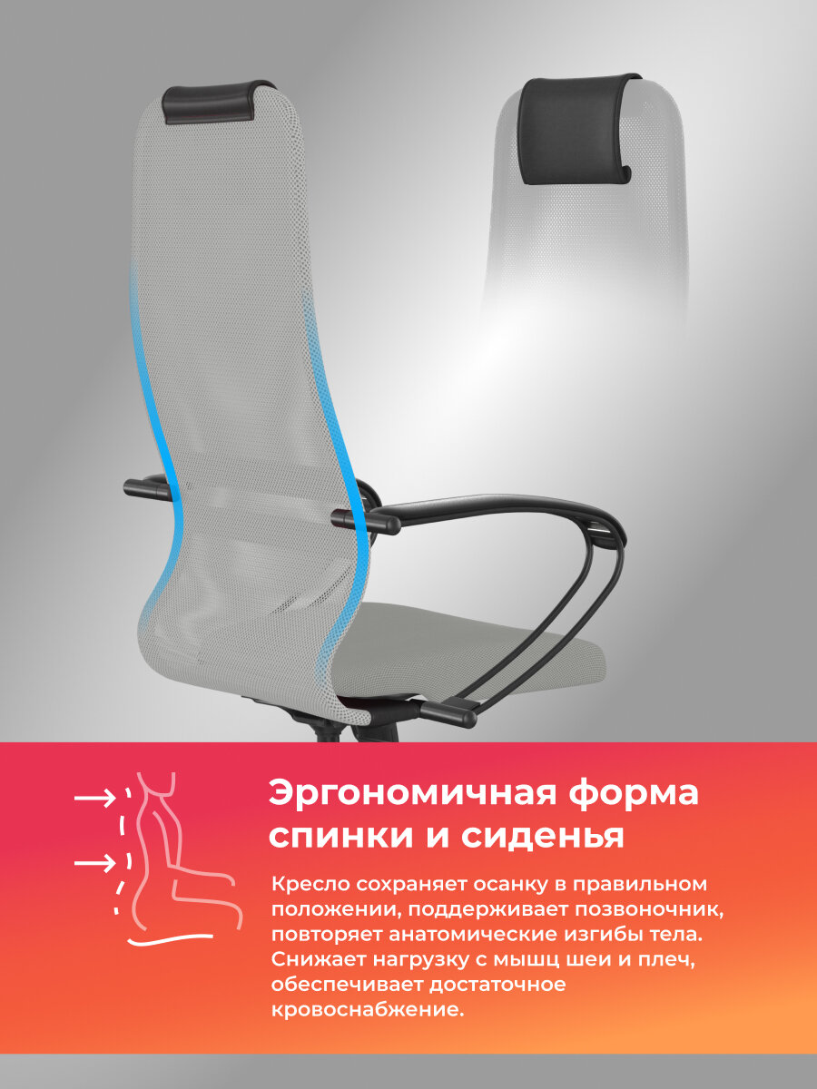 Эргономичное кресло SU-BK130-8 – базовая модель с высокой спинкой линейки офисных кресел серии «SU», сочетающая в себе необходимые настройки, эргономичную форму, соответствующую анатомической форме человека, современный дизайн и максимальный комфорт по доступной цене. Отличительные особенности: