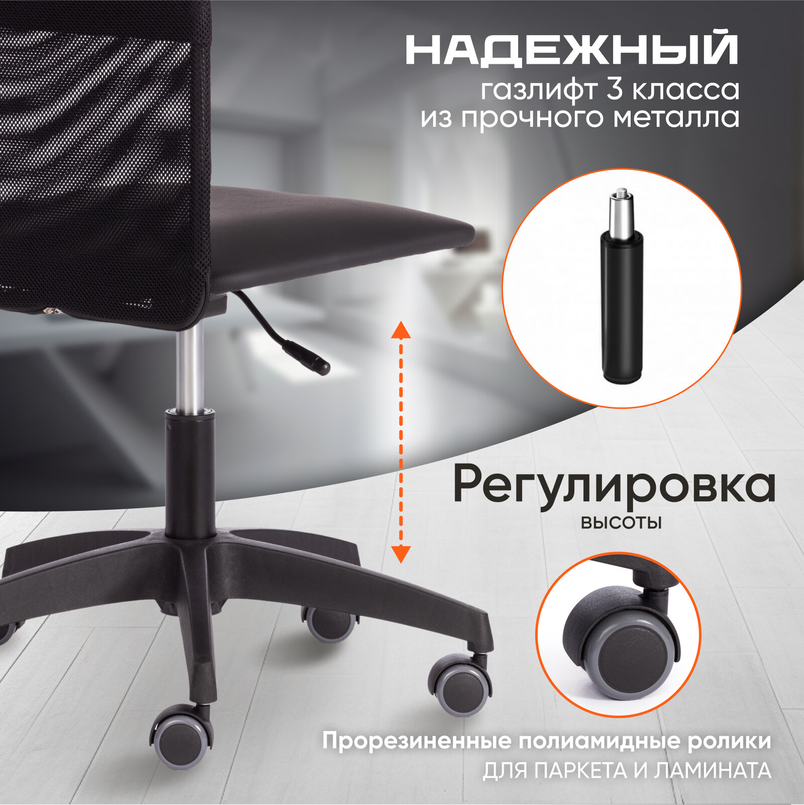 механизм качания, мягкое сиденье, прорезиненные колесики, спинка из сетки