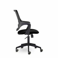 Воздушность конструкции выполнена за счет парящей спинки. При этом жесткость конструкции достигается за счет крепких подлокотников, являющихся частью каркаса.