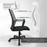 Обивка кресла выполнена из сетки и текстиля, что обеспечивает хорошую вентиляцию и комфорт при контакте с кожей.