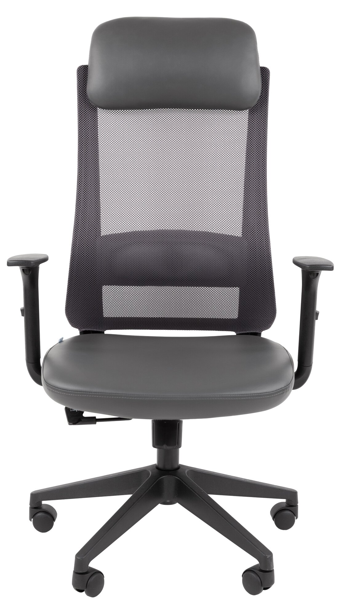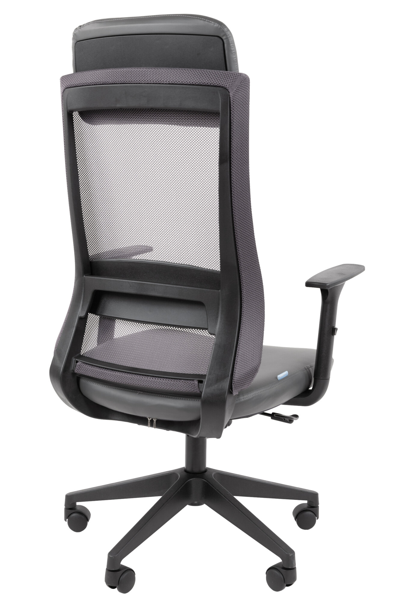 Купить Компьютерное офисное кресло CHAIRMAN 500 LT серое, экокожа/сетка с регулируемым подголовником и поясничным упором с доставкой по всей России.
