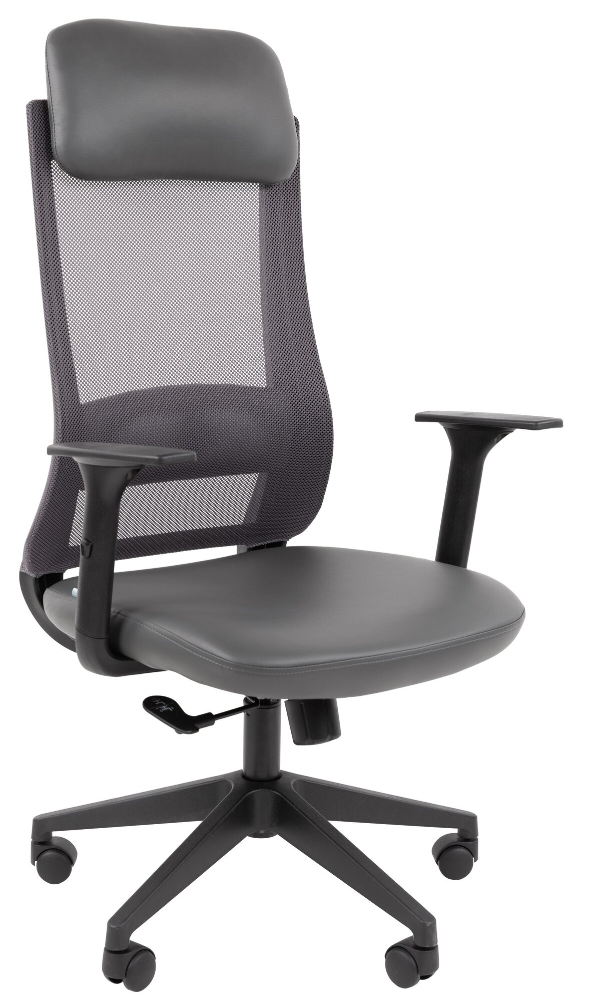 Компьютерное офисное кресло CHAIRMAN 500 LT серое, экокожа/сетка с регулируемым подголовником и поясничным упором: сравнение цен, характеристики, фото, актуальное наличие и цены.
