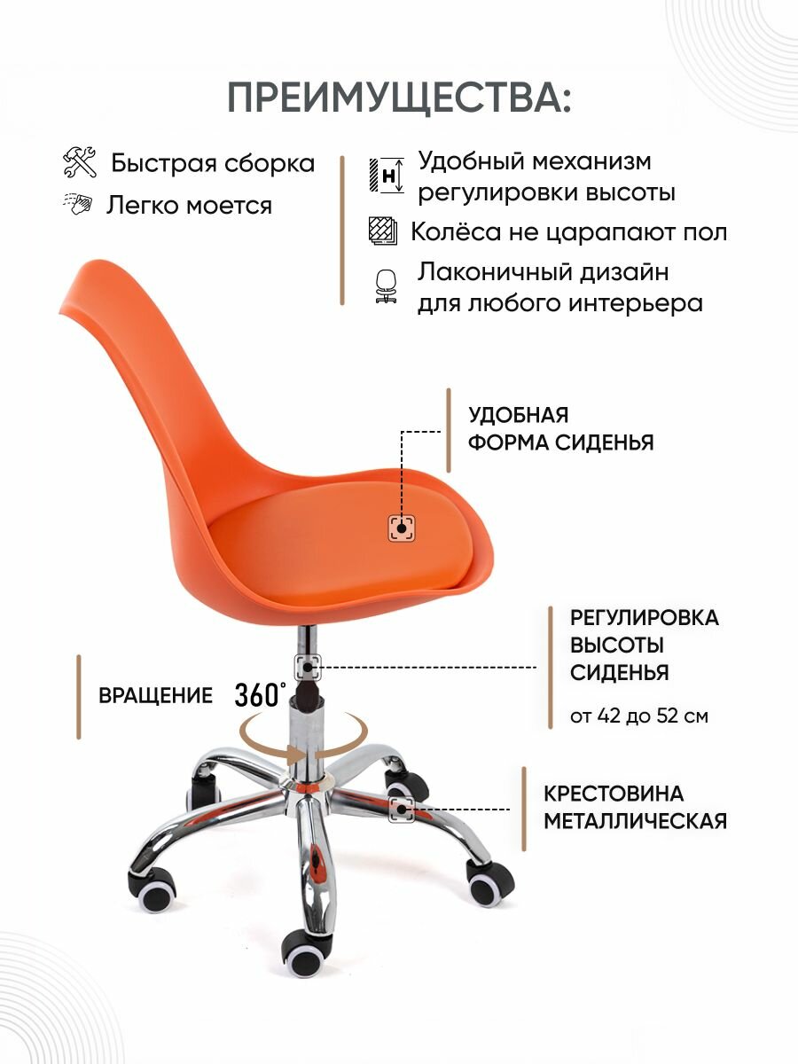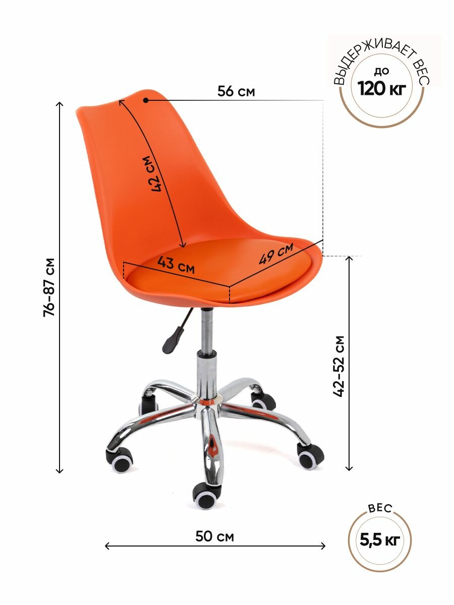 Представляем вашему вниманию компьютерное кресло на колесиках Gemlux GL-HC002. Оно создано специально для тех, кто проводит много времени за компьютером, может использоваться как компьютерное кресло геймерское и компьютерное кресло для ребенка. Это универсальная мебель для дома и офиса, которая сочетает в себе функции и стилистику кресла для компьютера и офисного кресла. Стул на колесиках подойдет как компьютерное кресло детское со спинкой или как компьютерное кресло для школьника с высокой спинкой. Отличное детское кресло или кресло для ребенка, школьника, руководителя, стул компьютерный, стул для компьютера школьный, подойдет для девочек и мальчиков. Эргономичное ортопедическое сиденье специальной формы из АБС-пластика и спинка с эффектом качания обеспечивают максимальную поддержку и комфортное расслабление. Одновременно жесткие и мягкие, они поддерживают спину и позвоночник, не дают мышцам затекать и нормализуют циркуляцию крови. Подушка на пластиковом каркасе, обтянутая поролоном и обитая экокожей, дарит мягкость и комфорт. Вы сможете чувствовать себя комфортно даже после длительных часов работы или игр. Кресло для ПК укомплектовано 5 колесиками из нейлона, которые легко скользят по любой поверхности, не заедают и не царапают пол. Крутящееся кресло-стул Gemlux - это универсальная модель, которая также может быть использована в качестве стула для мастера в салонах красоты. Возраст не имеет значения – и взрослые, и дети могут ощутить всю прелесть комфорта, который дарит данное кресло. Компьютерный офисный стул на колесах со спинкой оснащен газлифтом, который позволяет настроить высоту сиденья по вашим индивидуальным предпочтениям. Крестовина каркаса изготовлена из металла, а не из пластика, как у большинства аналогов, представленных на рынке. Металлический каркас кресла гарантирует прочность и безопасность. Вы можете быть уверены, что оно выдержит вес до 120 кг и прослужит вам долгие годы. Наслаждайтесь уютом и комфортом с высоким креслом, которое сочетает в себе стиль, эргономику и надежность. Обратите, пожалуйста, внимание! Крестовина кресла сварена вручную, поэтому в комплект кресла включена накладка, которая полностью скрывает следы сварки. Стул цвета orange.