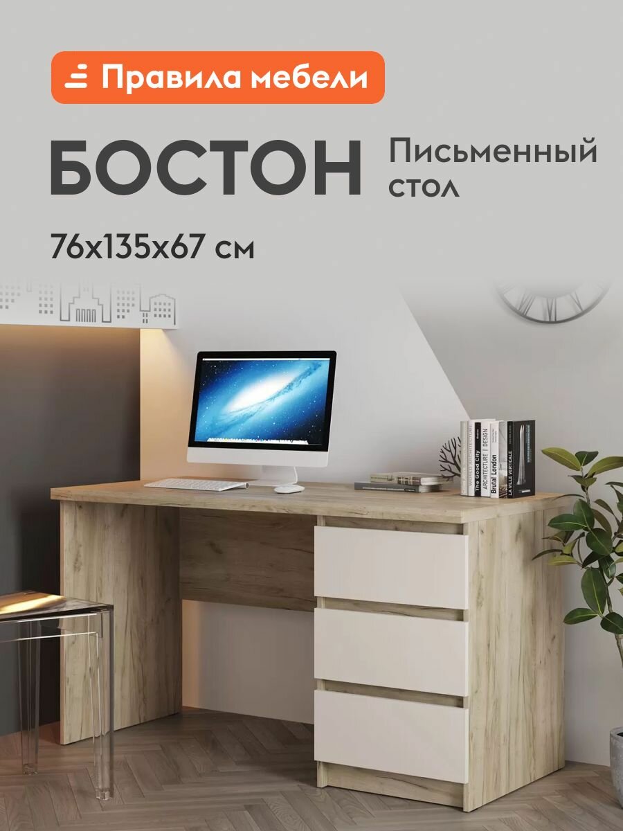 Компьютерный, письменный стол Бостон СП-001 с ящиками, 135.2х67х74.5 см, Дуб Крафт серый / Кашемир: сравнение цен, характеристики, фото, актуальное наличие и цены.
