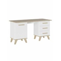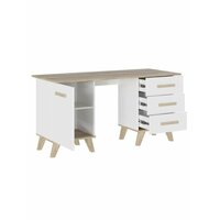 Купить Компьютерный, письменный стол Вега Скандинавия с ящиками, с полками, с тумбами, 140х60х72 см, Дуб Каньон / Белый / Белый глянец с доставкой по всей России.