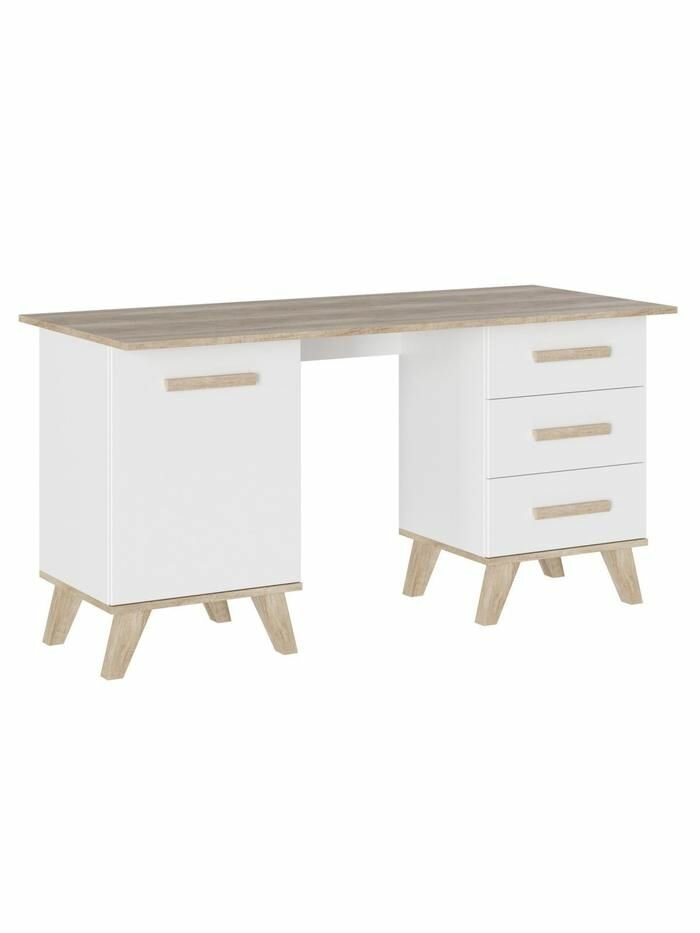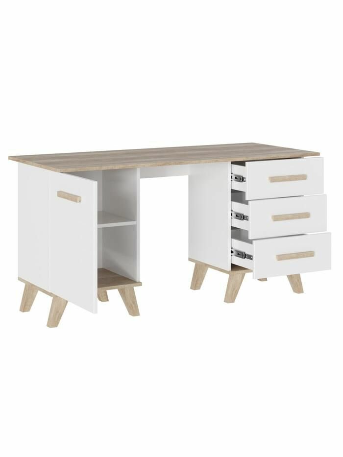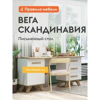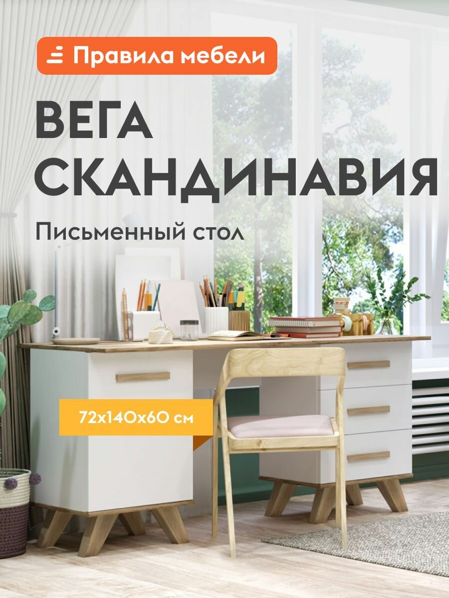 Компьютерный, письменный стол Вега Скандинавия с ящиками, с полками, с тумбами, 140х60х72 см, Дуб Каньон / Белый / Белый глянец: сравнение цен, характеристики, фото, актуальное наличие и цены.