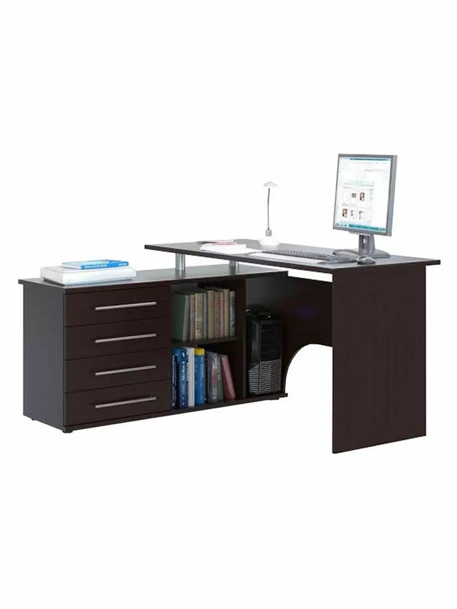 Компьютерный, письменный угловой стол Хьюстон с ящиками, с полками, с тумбой, 140х127х75 см, Венге, Левый: сравнение цен, характеристики, фото, актуальное наличие и цены.