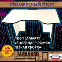 Компьютерный стол геймерский белого цвета, недорогой и удобный - настоящая находка как для любителя компьютерных игр, так и для человека, который работает за компьютером. Глубокая выемка в передней части столешницы позволяет человеку разместиться за столом с максимально возможным комфортом и во время игры не держать локти на весу. Конструкция стола надёжная и прочная, геймерский компьютерный стол отличается от аналогов хорошо продуманной эргономикой и дизайном! Столешница толщиной 16мм позволяет выдерживать нагрузку до 100 кг. Ножки регулируются по высоте по 8ми точкам.