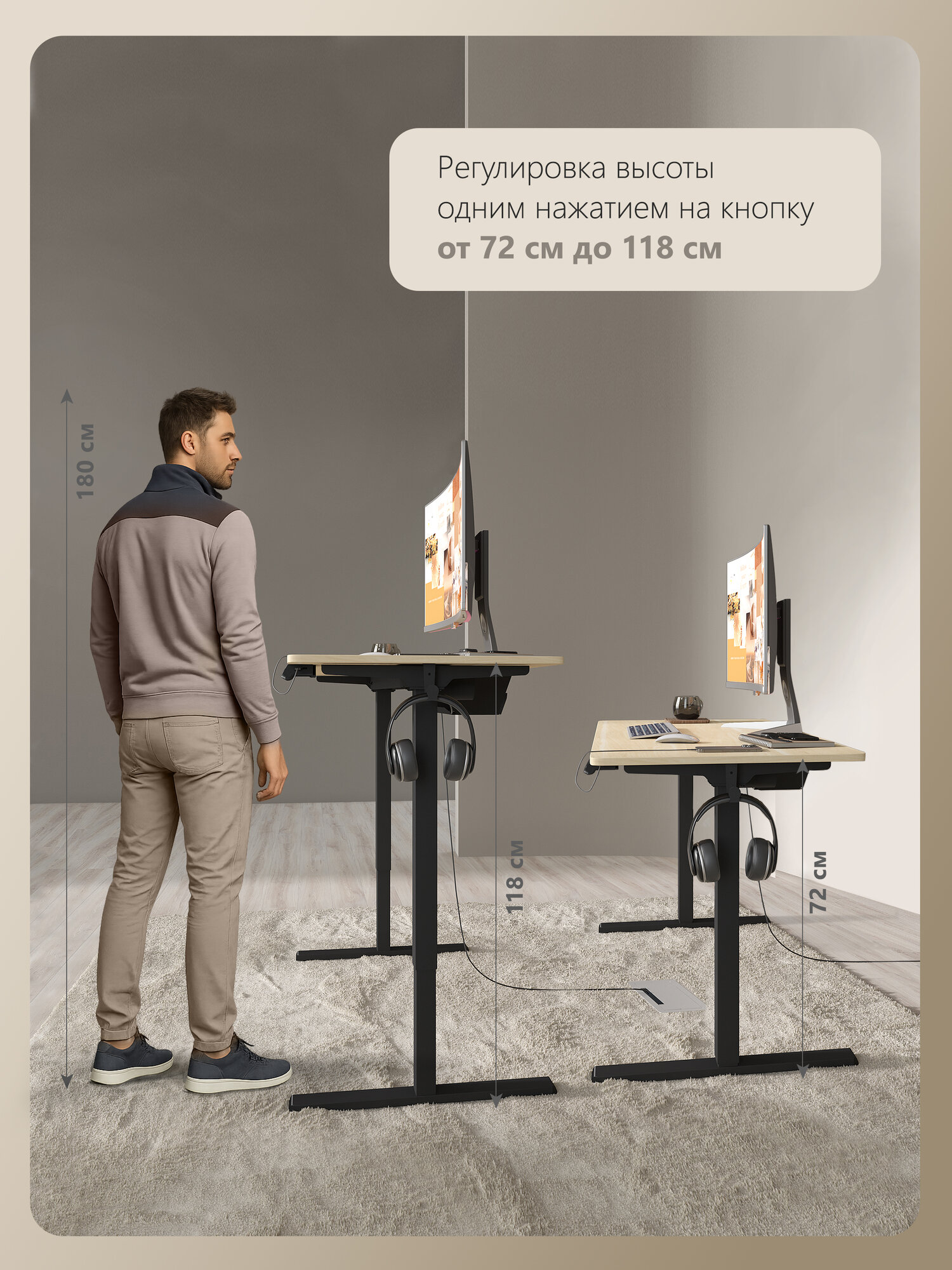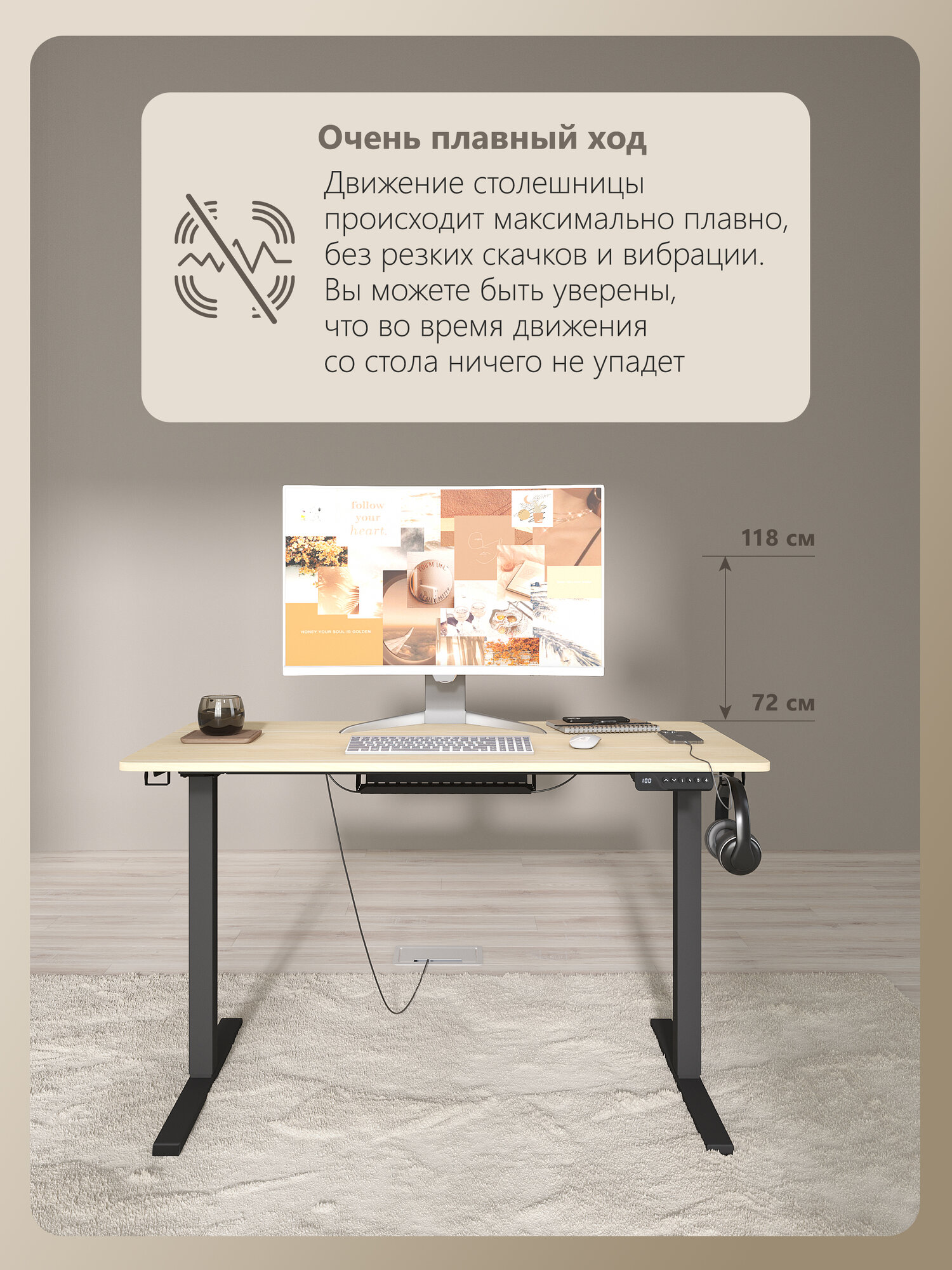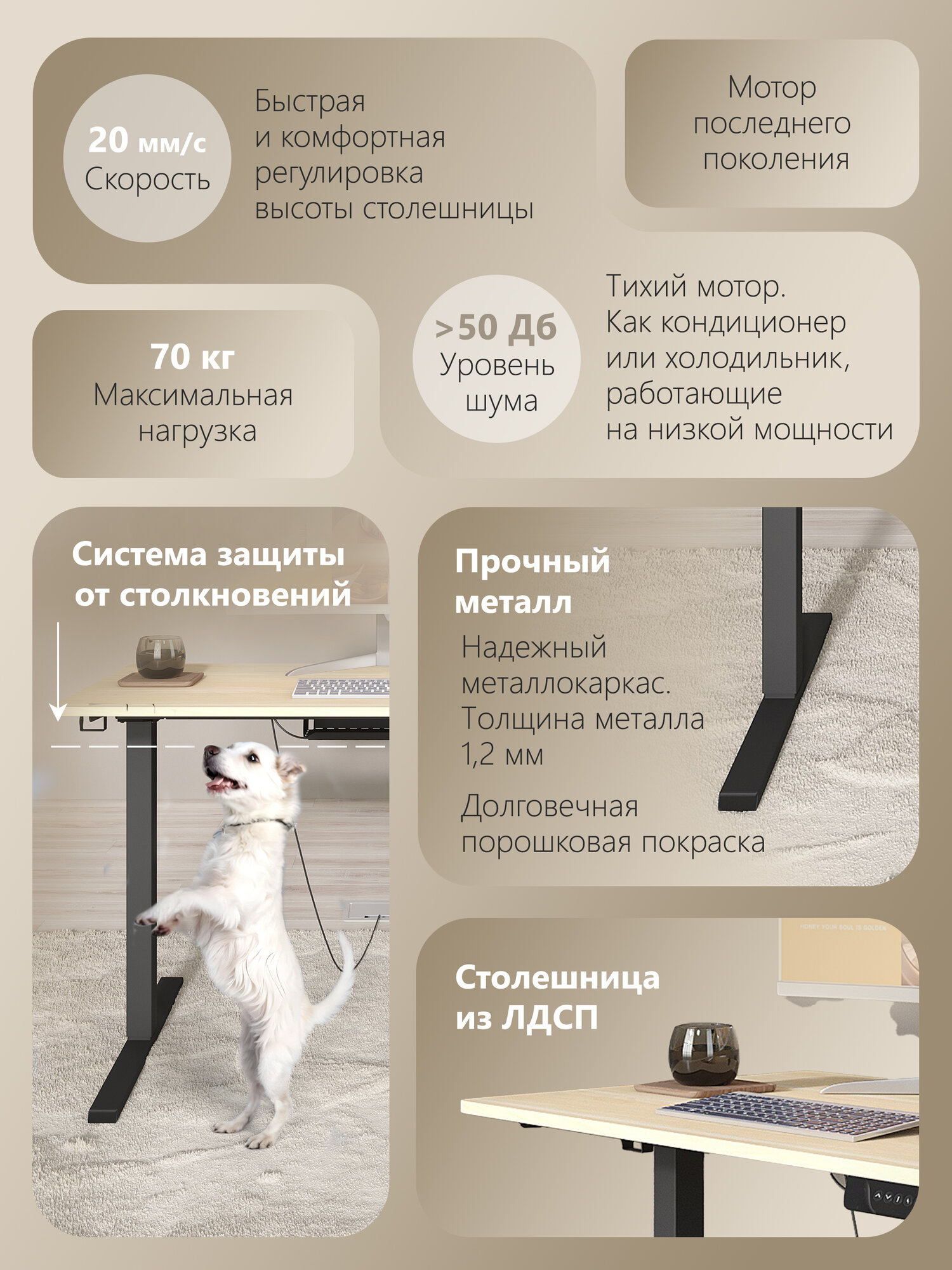 Купить Компьютерный стол AT-002.1 ЛДСП/металл дуб светлый/черный 120х60х72/118 с регулировкой высоты и электромотором игровой с доставкой по всей России.