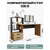 Компьютерный стол КМ-5 HomeGrad, ЛДСП, 165x60x110,5 см, белый/дуб крафт золотой