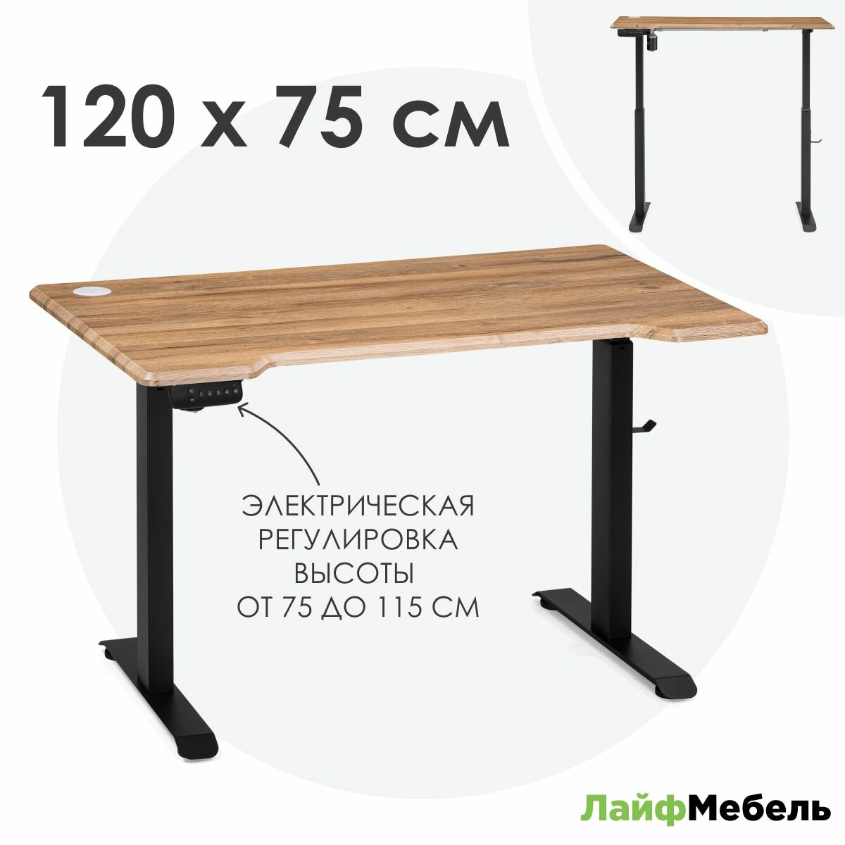 Купить Компьютерный стол Лайфмебель Маркос с механизмом подъема 120х75х75 дуб вотан / черный с доставкой по всей России.
