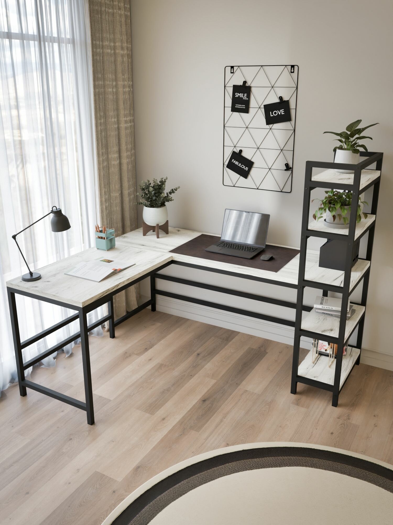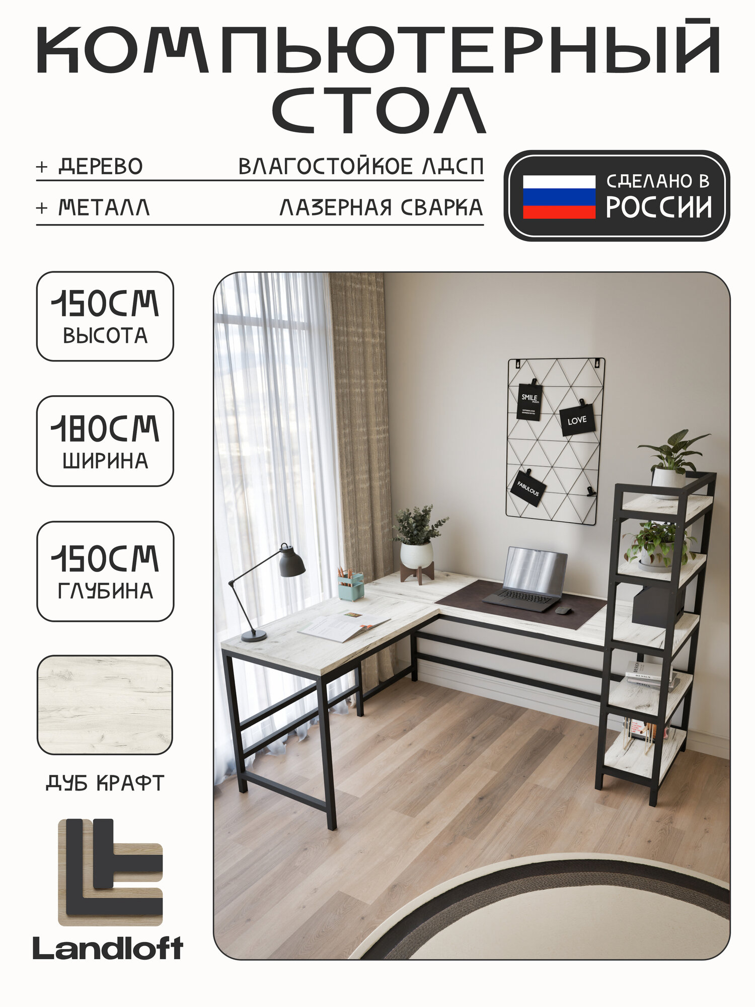 Компьютерный стол Landloft «Гордон Макси» Loft, угловой, цвет дуб крафт белый: сравнение цен, характеристики, фото, актуальное наличие и цены.