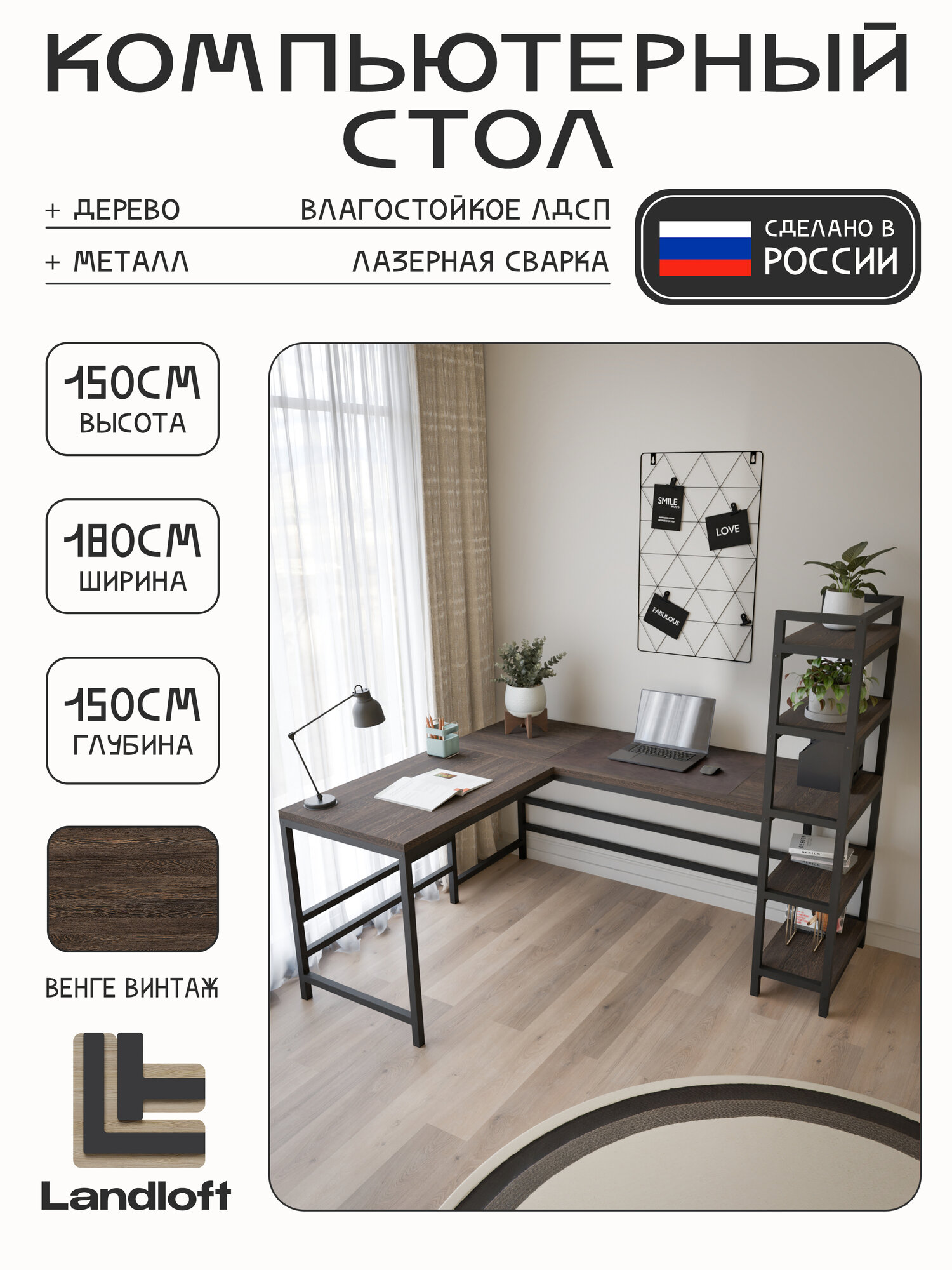 Компьютерный стол Landloft «Гордон Макси» Loft, угловой, цвет венге винтаж: сравнение цен, характеристики, фото, актуальное наличие и цены.